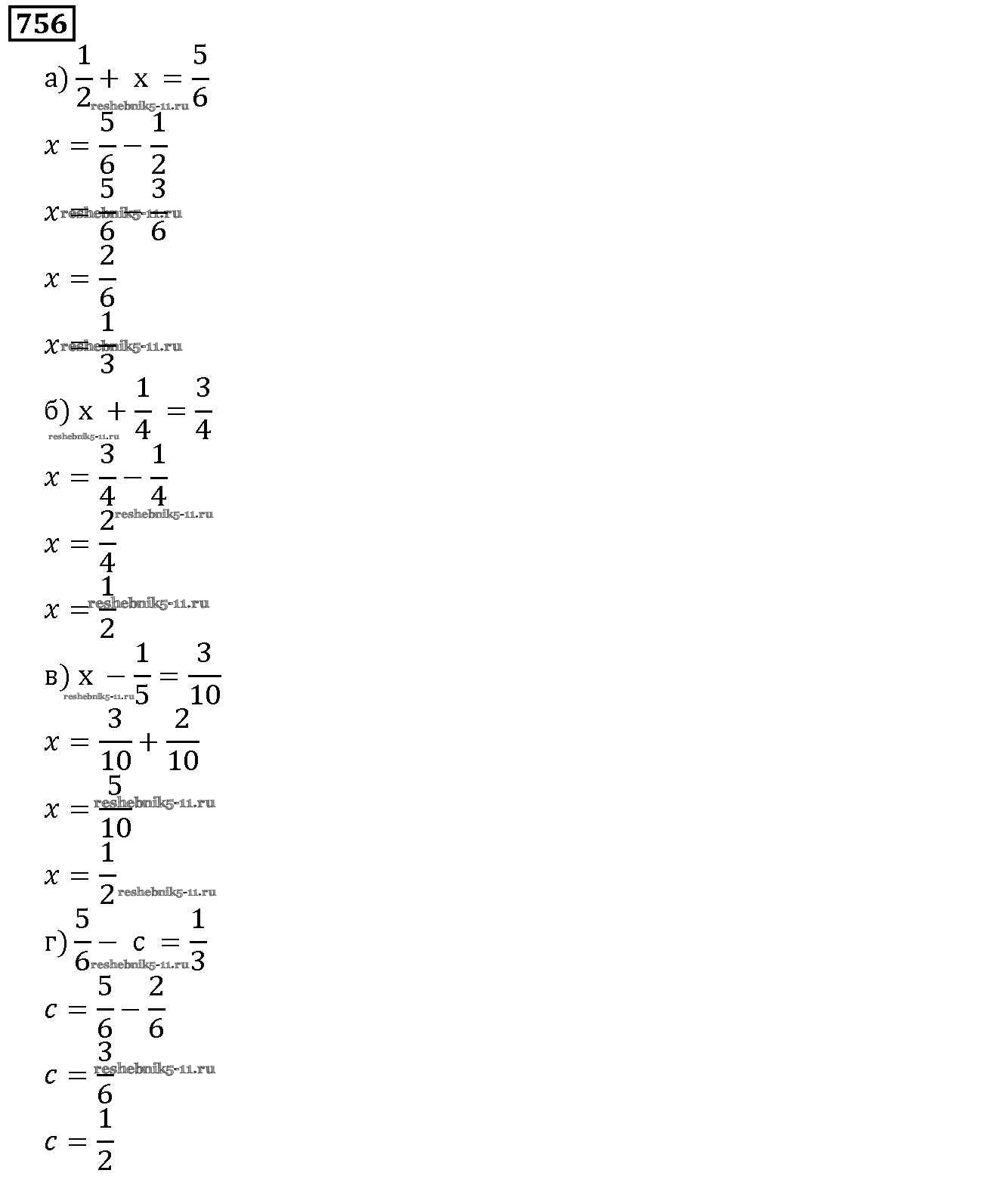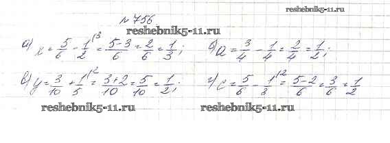 Готовая домашняя работа с ответами по Математике за 5 класс Дорофеев, Шарыгин, Суворова, Бунимович, Кузнецова, Минаева, Рослова Учебник Просвещение 2015 ФГОС - 9.1. Сложение и вычитание дробей 756