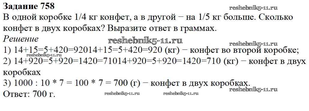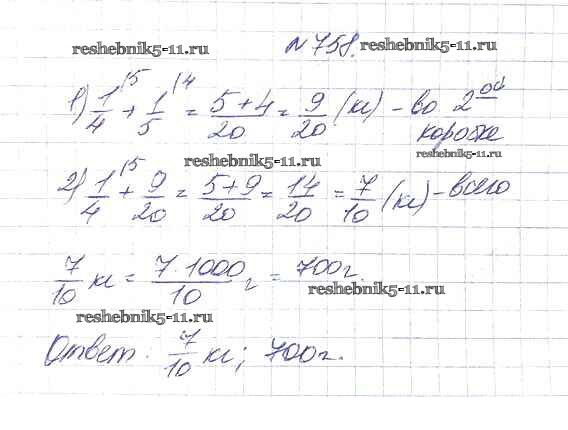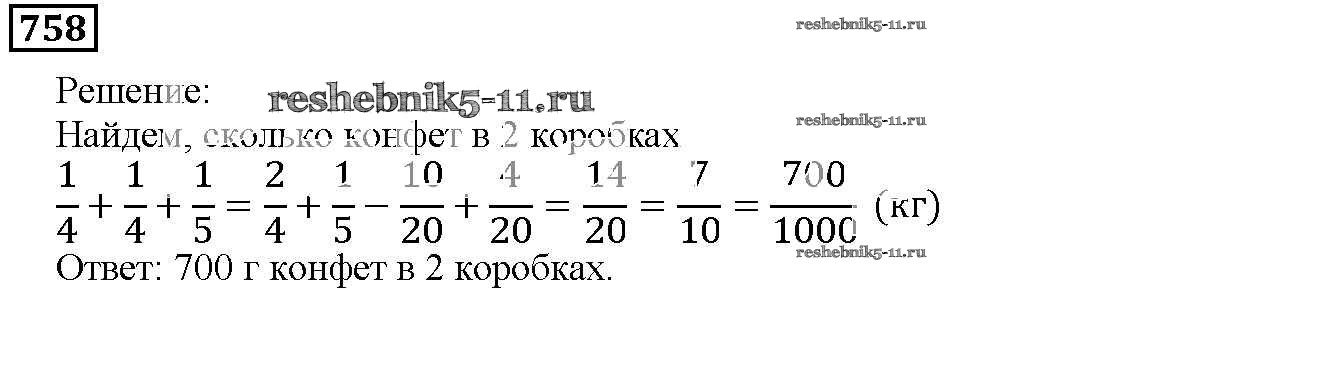 Готовая домашняя работа с ответами по Математике за 5 класс Дорофеев, Шарыгин, Суворова, Бунимович, Кузнецова, Минаева, Рослова Учебник Просвещение 2015 ФГОС - 9.1. Сложение и вычитание дробей 758