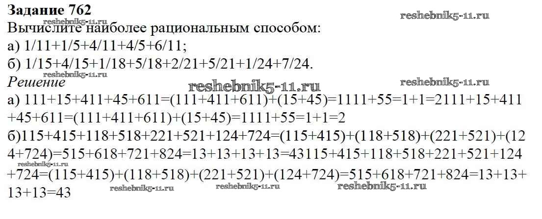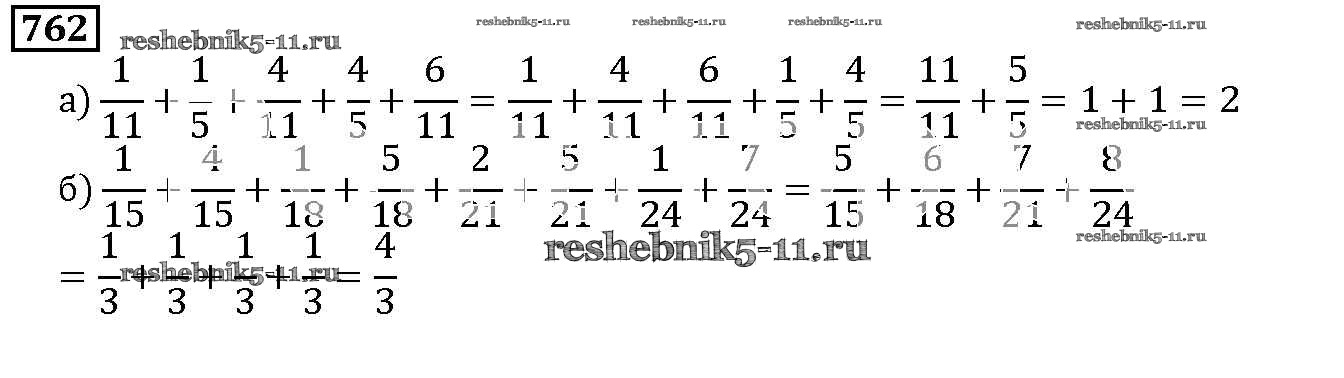 Готовая домашняя работа с ответами по Математике за 5 класс Дорофеев, Шарыгин, Суворова, Бунимович, Кузнецова, Минаева, Рослова Учебник Просвещение 2015 ФГОС - 9.1. Сложение и вычитание дробей 762