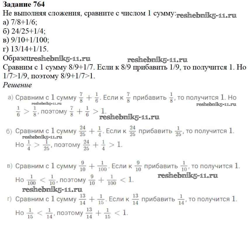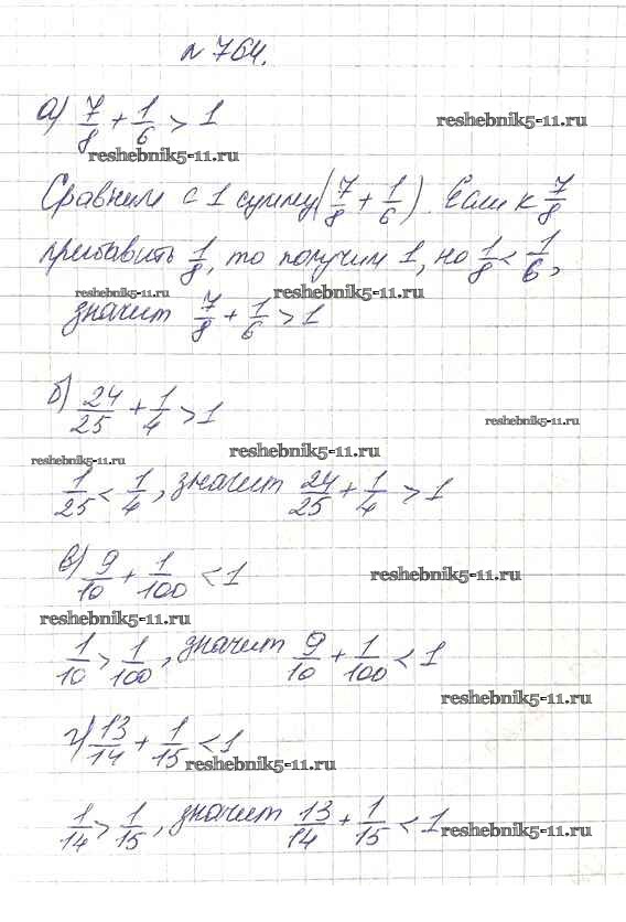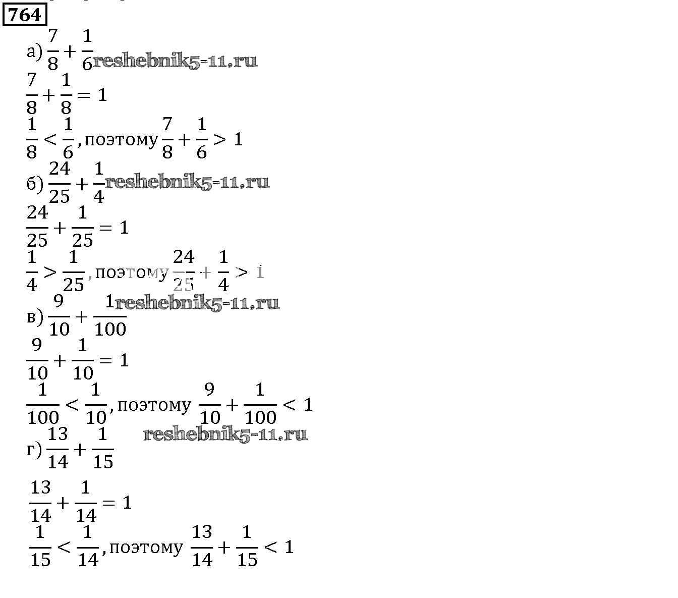 Готовая домашняя работа с ответами по Математике за 5 класс Дорофеев, Шарыгин, Суворова, Бунимович, Кузнецова, Минаева, Рослова Учебник Просвещение 2015 ФГОС - 9.1. Сложение и вычитание дробей 764