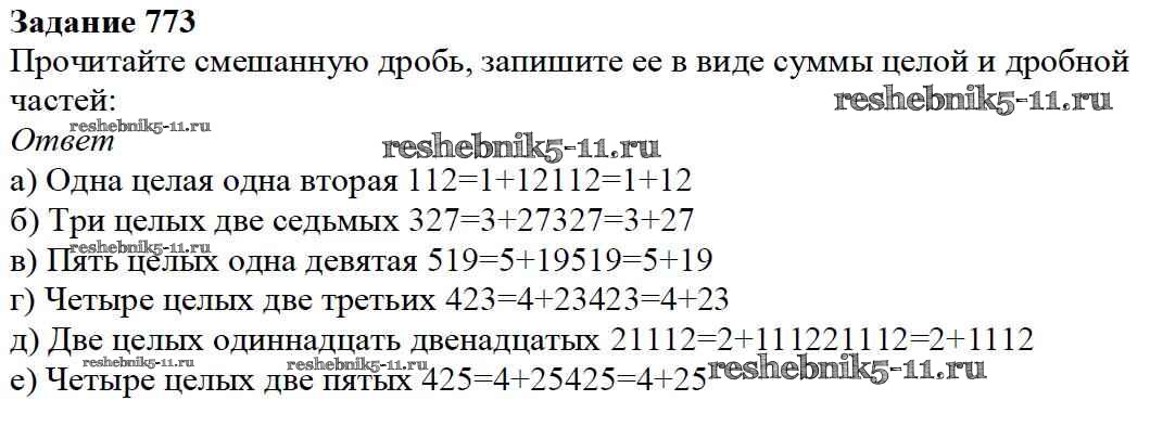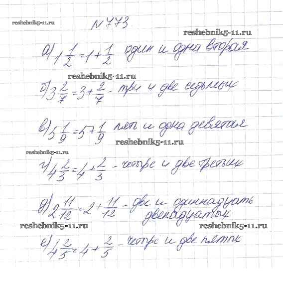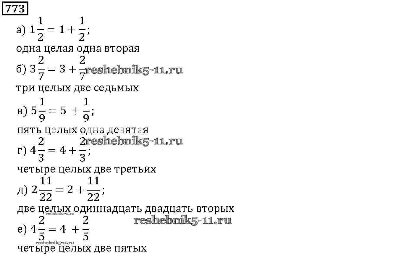 Готовая домашняя работа с ответами по Математике за 5 класс Дорофеев, Шарыгин, Суворова, Бунимович, Кузнецова, Минаева, Рослова Учебник Просвещение 2015 ФГОС - 9.2. Смешанные дроби 773