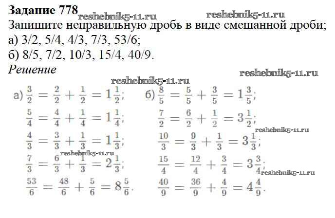 Готовая домашняя работа с ответами по Математике за 5 класс Дорофеев, Шарыгин, Суворова, Бунимович, Кузнецова, Минаева, Рослова Учебник Просвещение 2015 ФГОС - 9.2. Смешанные дроби 778