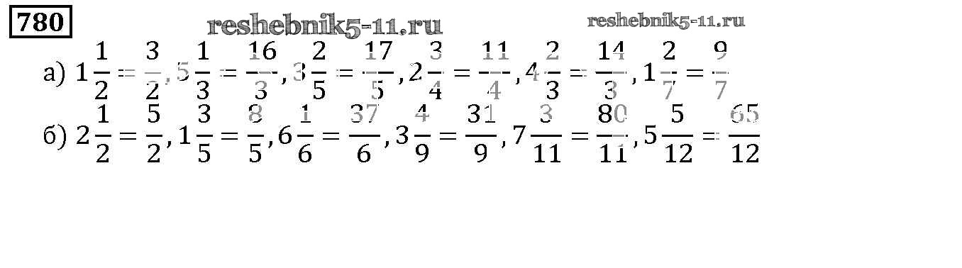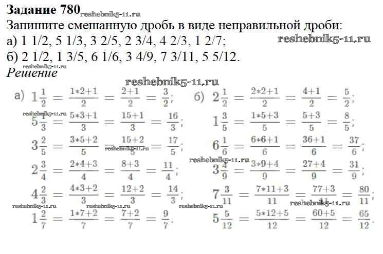 Готовая домашняя работа с ответами по Математике за 5 класс Дорофеев, Шарыгин, Суворова, Бунимович, Кузнецова, Минаева, Рослова Учебник Просвещение 2015 ФГОС - 9.2. Смешанные дроби 780