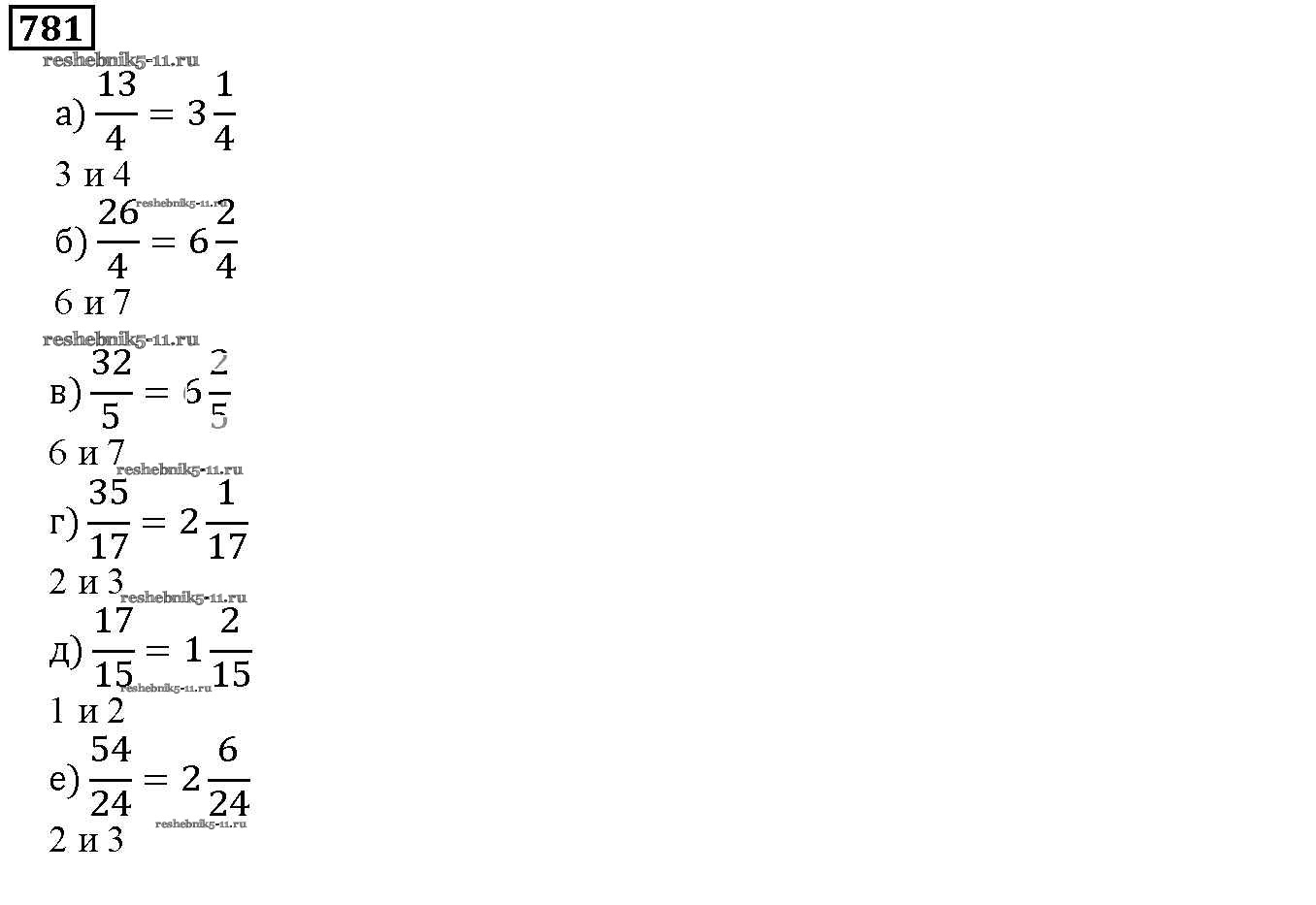 Готовая домашняя работа с ответами по Математике за 5 класс Дорофеев, Шарыгин, Суворова, Бунимович, Кузнецова, Минаева, Рослова Учебник Просвещение 2015 ФГОС - 9.2. Смешанные дроби 781
