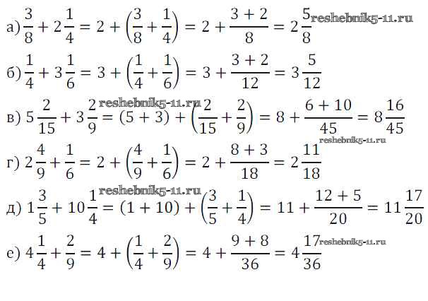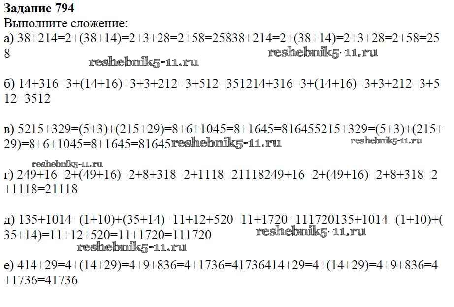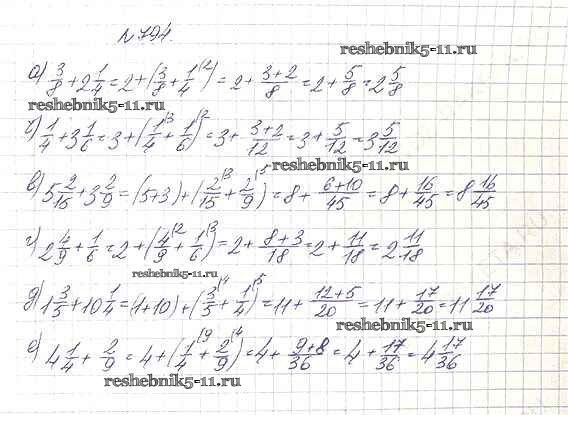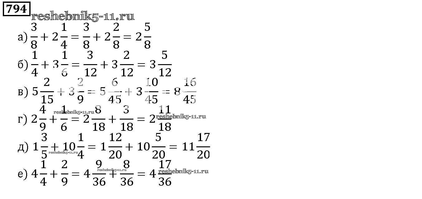 Готовая домашняя работа с ответами по Математике за 5 класс Дорофеев, Шарыгин, Суворова, Бунимович, Кузнецова, Минаева, Рослова Учебник Просвещение 2015 ФГОС - 9.3. Сложение и вычитание смешанных дробей 794