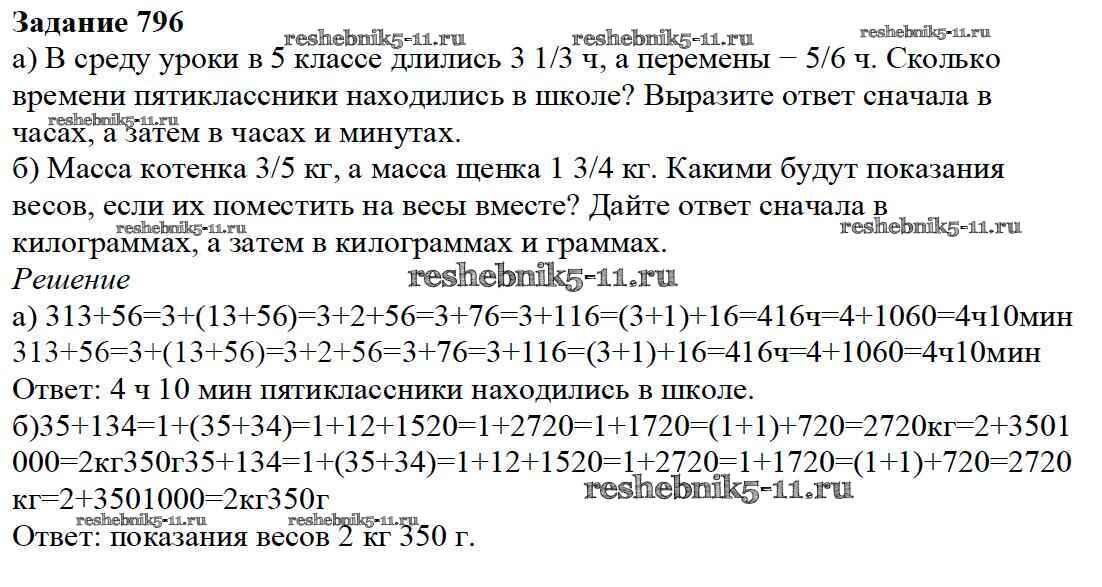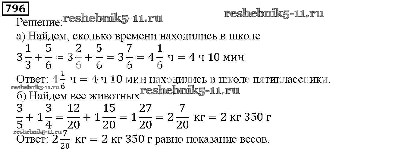 Готовая домашняя работа с ответами по Математике за 5 класс Дорофеев, Шарыгин, Суворова, Бунимович, Кузнецова, Минаева, Рослова Учебник Просвещение 2015 ФГОС - 9.3. Сложение и вычитание смешанных дробей 796