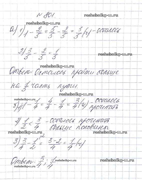 Готовая домашняя работа с ответами по Математике за 5 класс Дорофеев, Шарыгин, Суворова, Бунимович, Кузнецова, Минаева, Рослова Учебник Просвещение 2015 ФГОС - 9.3. Сложение и вычитание смешанных дробей 801