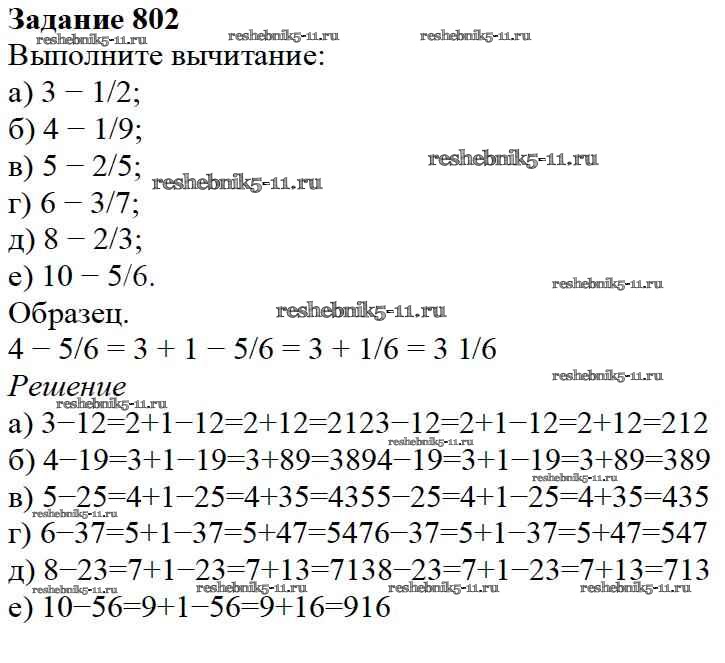 Готовая домашняя работа с ответами по Математике за 5 класс Дорофеев, Шарыгин, Суворова, Бунимович, Кузнецова, Минаева, Рослова Учебник Просвещение 2015 ФГОС - 9.3. Сложение и вычитание смешанных дробей 802