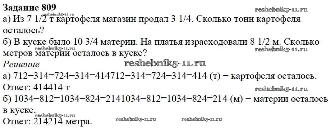 Готовая домашняя работа с ответами по Математике за 5 класс Дорофеев, Шарыгин, Суворова, Бунимович, Кузнецова, Минаева, Рослова Учебник Просвещение 2015 ФГОС - 9.3. Сложение и вычитание смешанных дробей 809