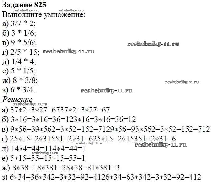 Готовая домашняя работа с ответами по Математике за 5 класс Дорофеев, Шарыгин, Суворова, Бунимович, Кузнецова, Минаева, Рослова Учебник Просвещение 2015 ФГОС - 9.4. Умножение дробей 825
