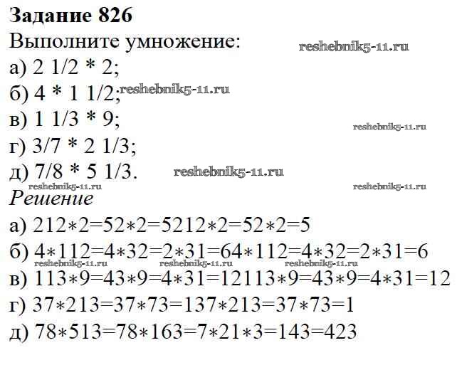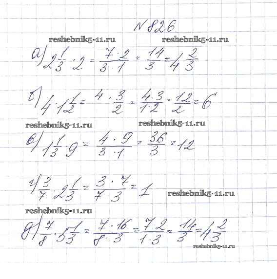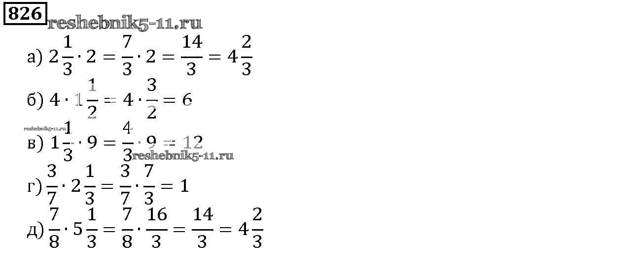 Готовая домашняя работа с ответами по Математике за 5 класс Дорофеев, Шарыгин, Суворова, Бунимович, Кузнецова, Минаева, Рослова Учебник Просвещение 2015 ФГОС - 9.4. Умножение дробей 826