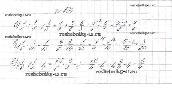 Готовая домашняя работа с ответами по Математике за 5 класс Дорофеев, Шарыгин, Суворова, Бунимович, Кузнецова, Минаева, Рослова Учебник Просвещение 2015 ФГОС - 9.4. Умножение дробей 834