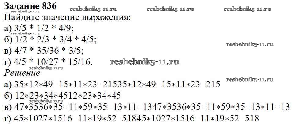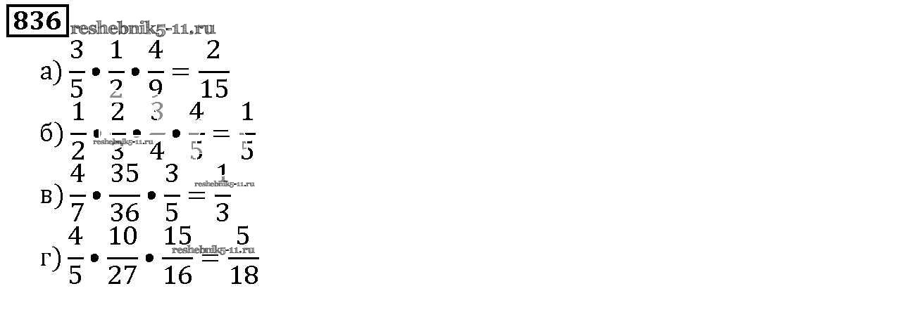Готовая домашняя работа с ответами по Математике за 5 класс Дорофеев, Шарыгин, Суворова, Бунимович, Кузнецова, Минаева, Рослова Учебник Просвещение 2015 ФГОС - 9.4. Умножение дробей 836