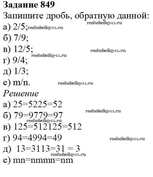 Готовая домашняя работа с ответами по Математике за 5 класс Дорофеев, Шарыгин, Суворова, Бунимович, Кузнецова, Минаева, Рослова Учебник Просвещение 2015 ФГОС - 9.5. Деление дробей 849