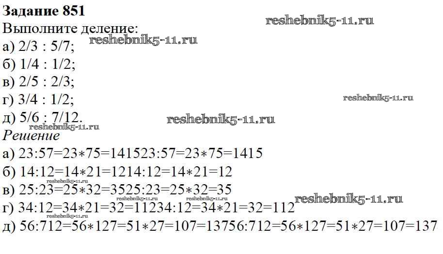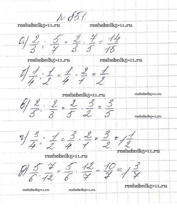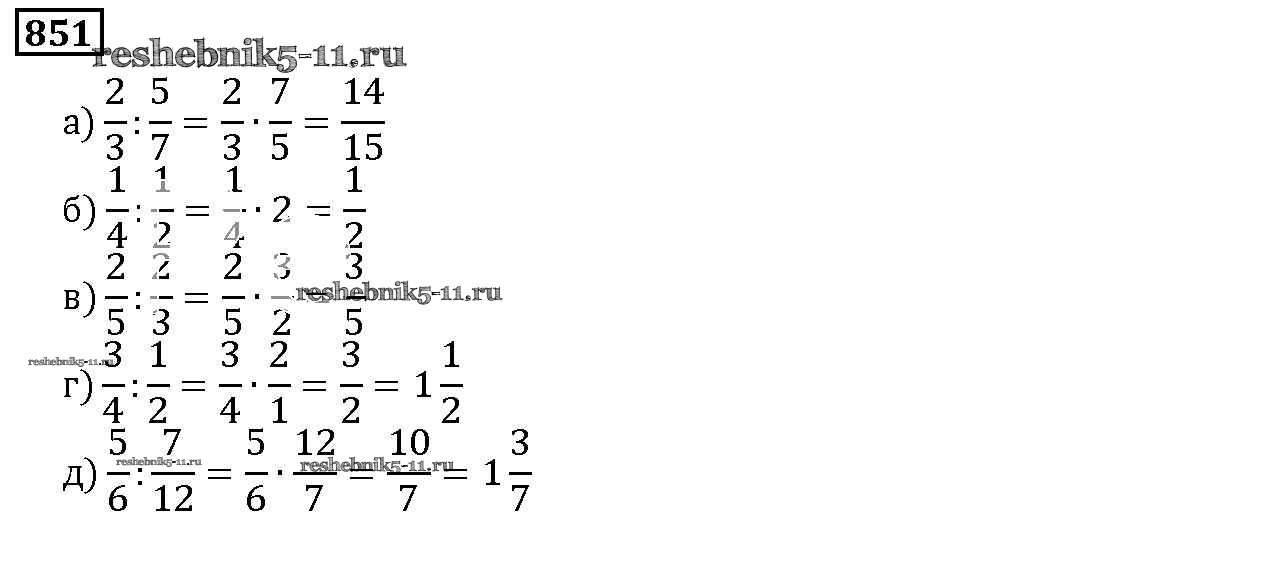 Готовая домашняя работа с ответами по Математике за 5 класс Дорофеев, Шарыгин, Суворова, Бунимович, Кузнецова, Минаева, Рослова Учебник Просвещение 2015 ФГОС - 9.5. Деление дробей 851