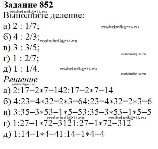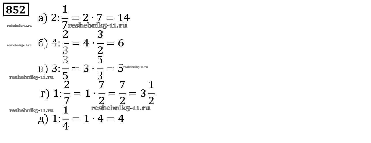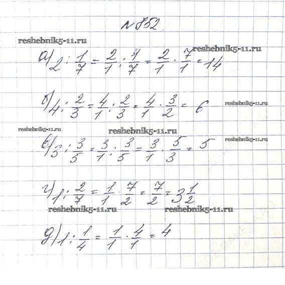 Готовая домашняя работа с ответами по Математике за 5 класс Дорофеев, Шарыгин, Суворова, Бунимович, Кузнецова, Минаева, Рослова Учебник Просвещение 2015 ФГОС - 9.5. Деление дробей 852
