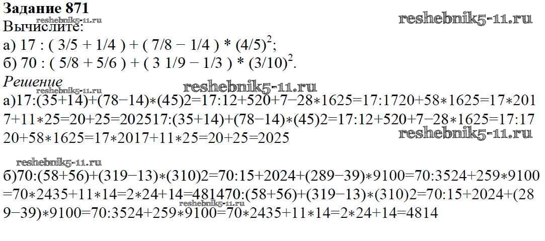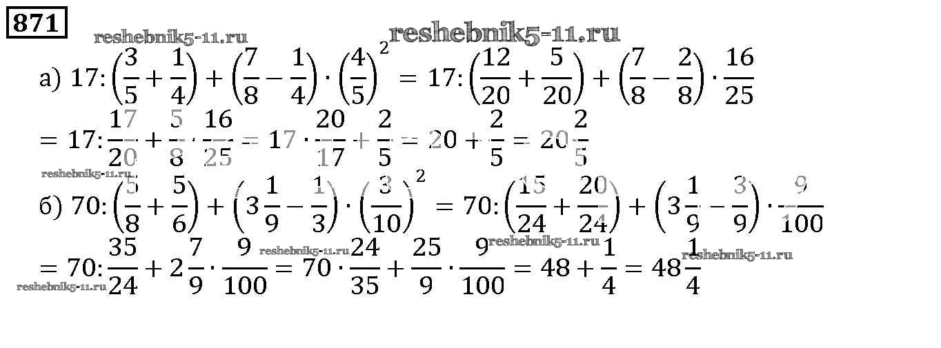 Готовая домашняя работа с ответами по Математике за 5 класс Дорофеев, Шарыгин, Суворова, Бунимович, Кузнецова, Минаева, Рослова Учебник Просвещение 2015 ФГОС - 9.5. Деление дробей 871