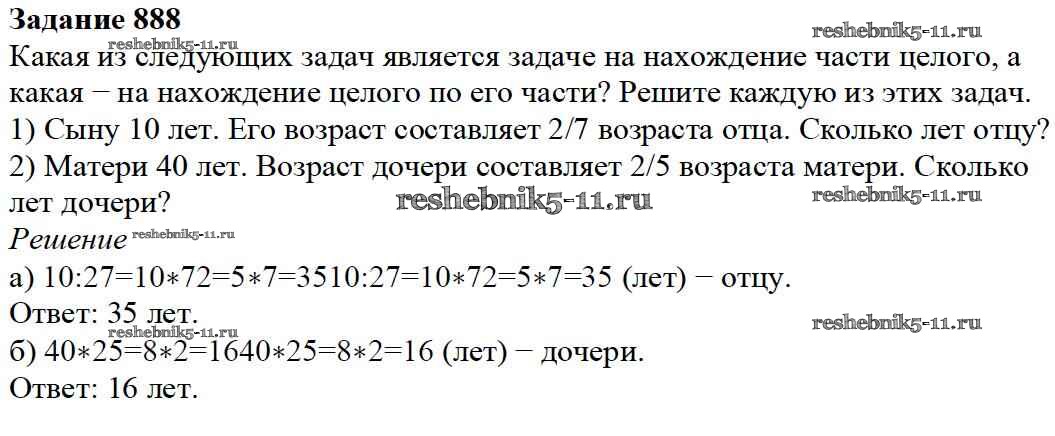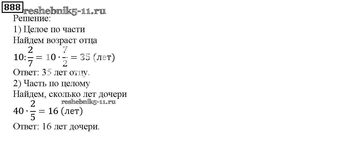 Готовая домашняя работа с ответами по Математике за 5 класс Дорофеев, Шарыгин, Суворова, Бунимович, Кузнецова, Минаева, Рослова Учебник Просвещение 2015 ФГОС - 9.6. Нахождение части целого и целого по части 888