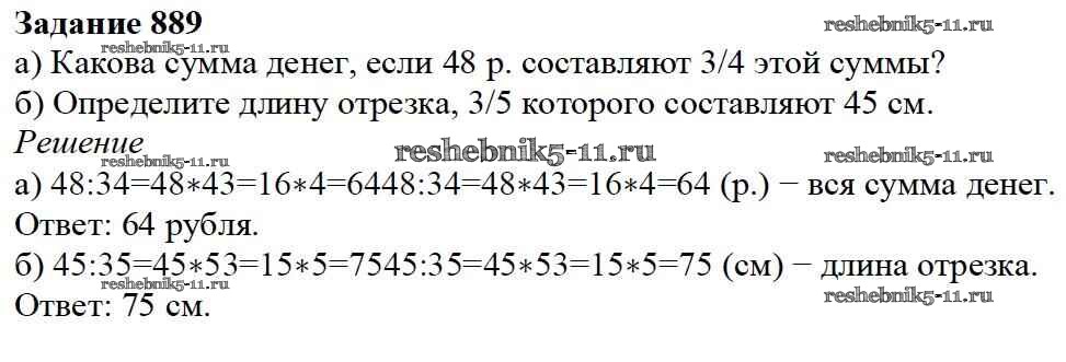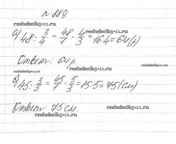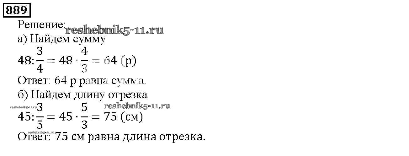 Готовая домашняя работа с ответами по Математике за 5 класс Дорофеев, Шарыгин, Суворова, Бунимович, Кузнецова, Минаева, Рослова Учебник Просвещение 2015 ФГОС - 9.6. Нахождение части целого и целого по части 889