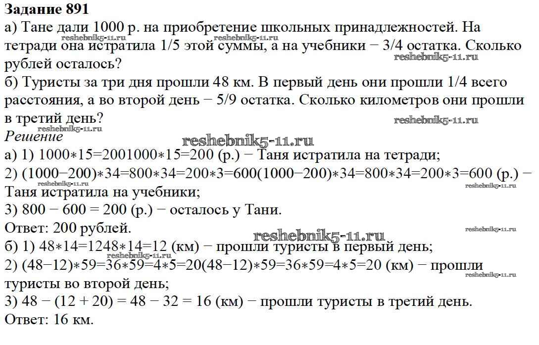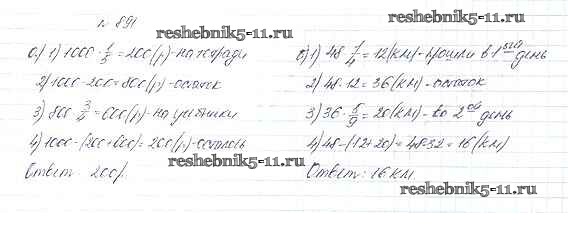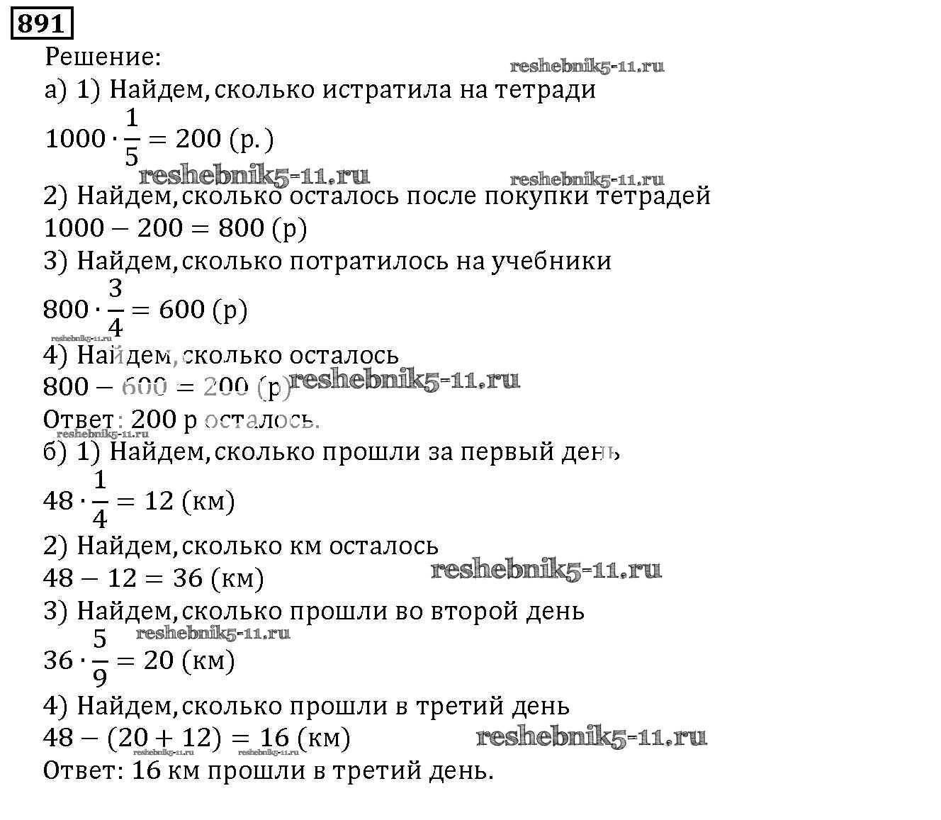 Готовая домашняя работа с ответами по Математике за 5 класс Дорофеев, Шарыгин, Суворова, Бунимович, Кузнецова, Минаева, Рослова Учебник Просвещение 2015 ФГОС - 9.6. Нахождение части целого и целого по части 891