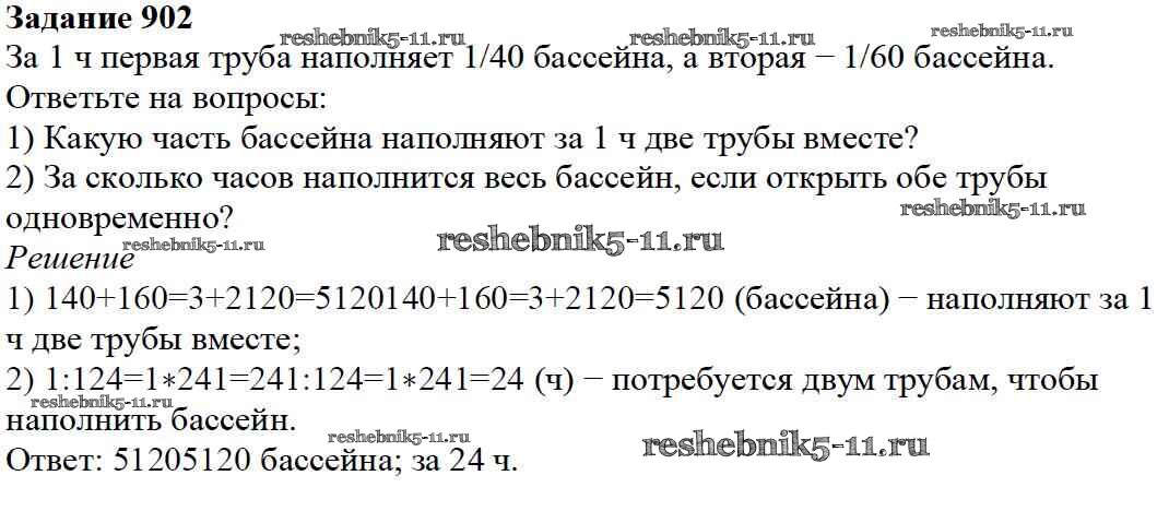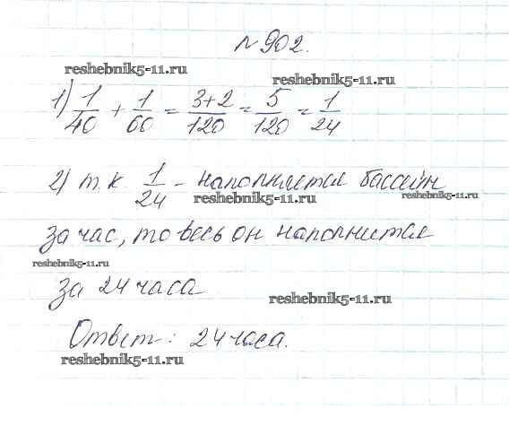 Готовая домашняя работа с ответами по Математике за 5 класс Дорофеев, Шарыгин, Суворова, Бунимович, Кузнецова, Минаева, Рослова Учебник Просвещение 2015 ФГОС - 9.7. Задачи на совместную работу 902