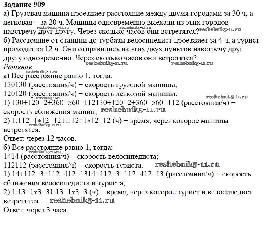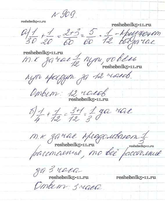 Готовая домашняя работа с ответами по Математике за 5 класс Дорофеев, Шарыгин, Суворова, Бунимович, Кузнецова, Минаева, Рослова Учебник Просвещение 2015 ФГОС - 9.7. Задачи на совместную работу 909