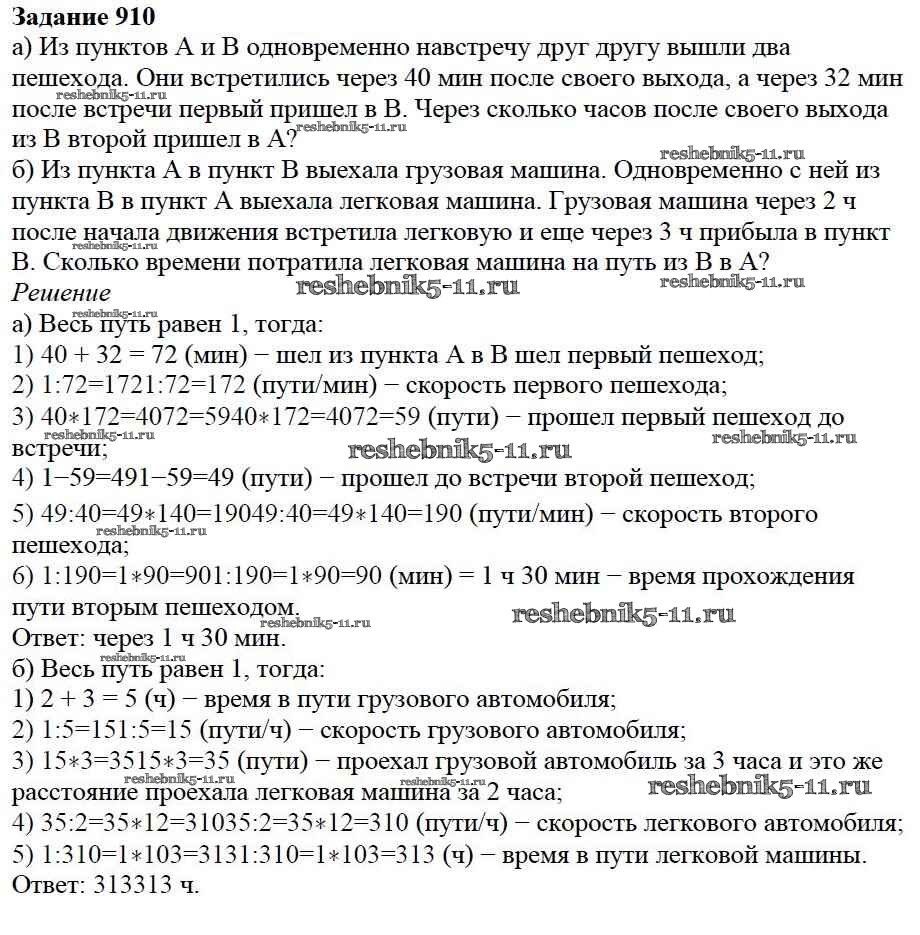 Готовая домашняя работа с ответами по Математике за 5 класс Дорофеев, Шарыгин, Суворова, Бунимович, Кузнецова, Минаева, Рослова Учебник Просвещение 2015 ФГОС - 9.7. Задачи на совместную работу 910
