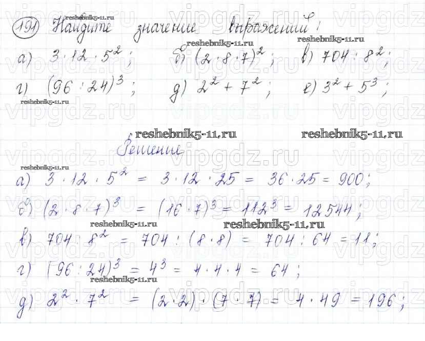 Готовая домашняя работа с ответами по Математике за 5 класс Бунимович, Дорофеев, Суворова Учебник Сферы Просвещение 2014 ФГОС - Упражнения 191