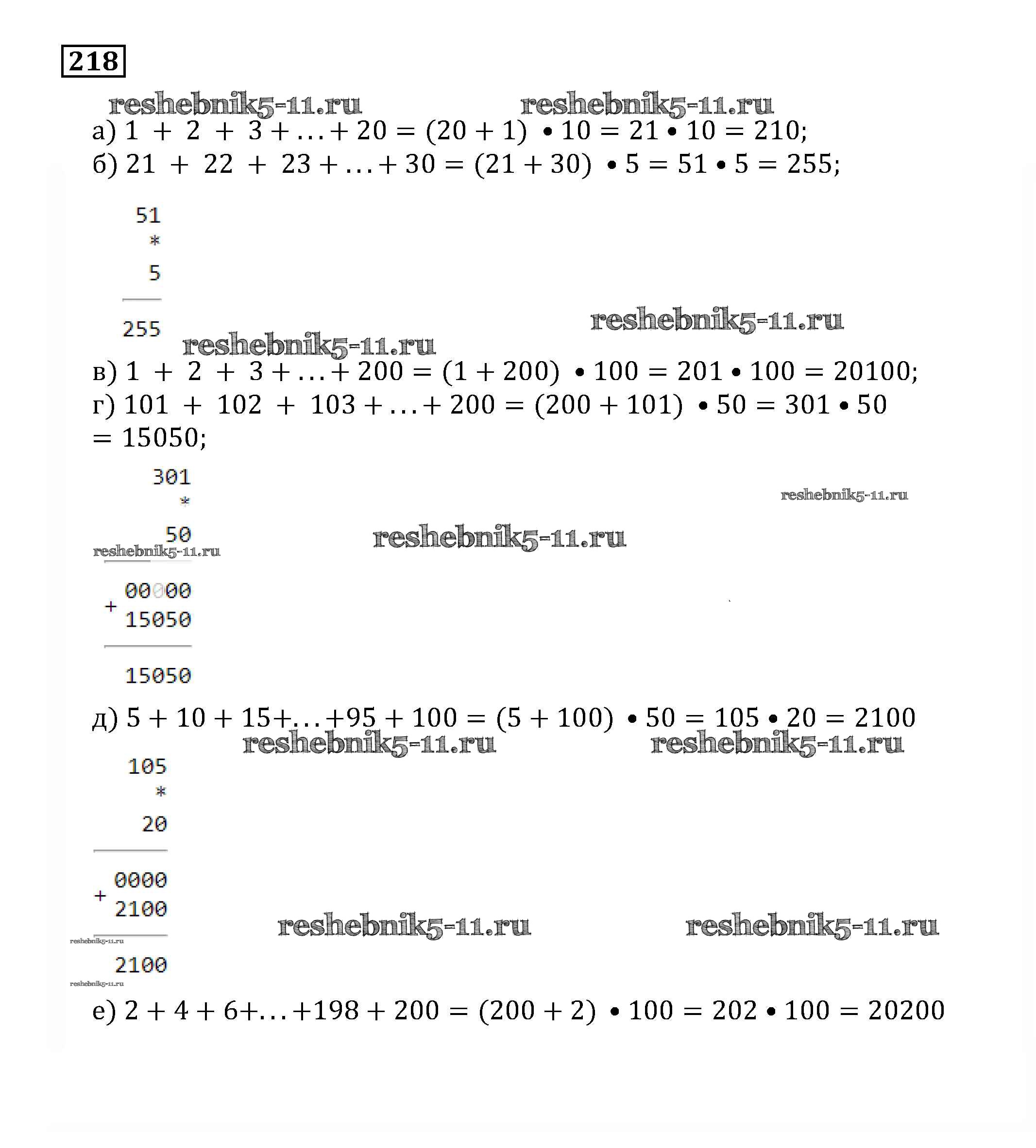 Готовая домашняя работа с ответами по Математике за 5 класс Бунимович, Дорофеев, Суворова Учебник Сферы Просвещение 2014 ФГОС - Упражнения 218