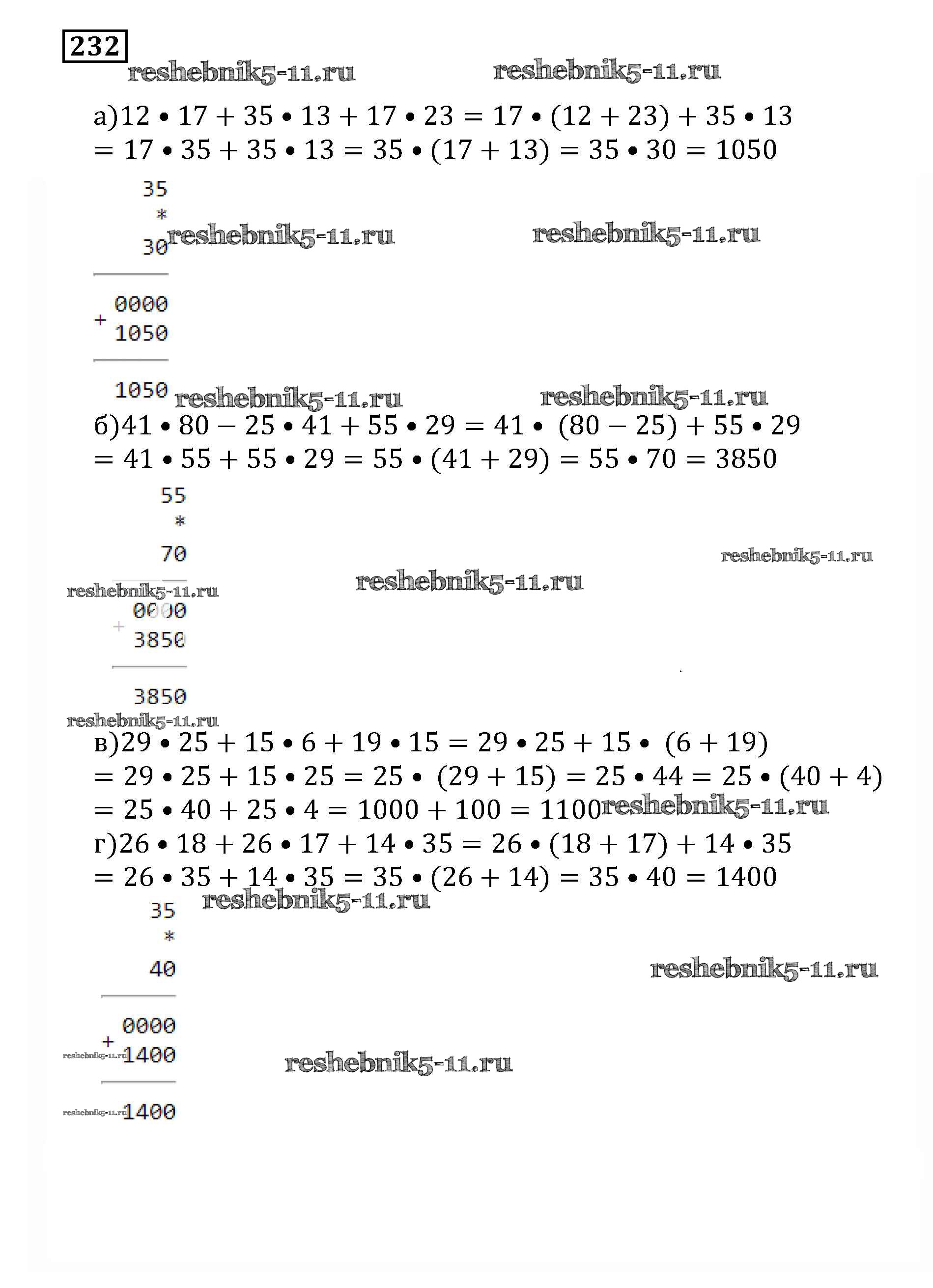 Готовая домашняя работа с ответами по Математике за 5 класс Бунимович, Дорофеев, Суворова Учебник Сферы Просвещение 2014 ФГОС - Упражнения 232