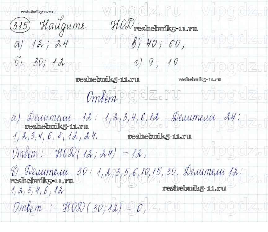Готовая домашняя работа с ответами по Математике за 5 класс Бунимович, Дорофеев, Суворова Учебник Сферы Просвещение 2014 ФГОС - Упражнения 315