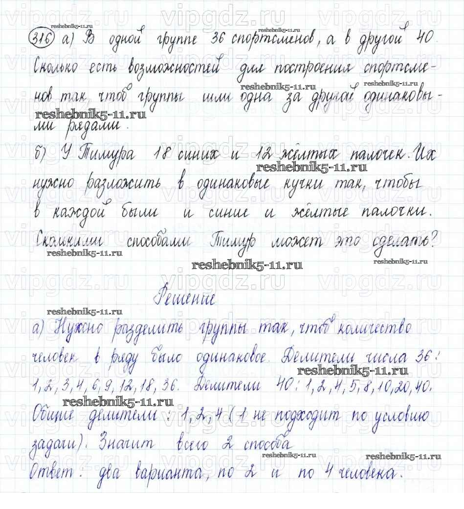 Готовая домашняя работа с ответами по Математике за 5 класс Бунимович, Дорофеев, Суворова Учебник Сферы Просвещение 2014 ФГОС - Упражнения 316