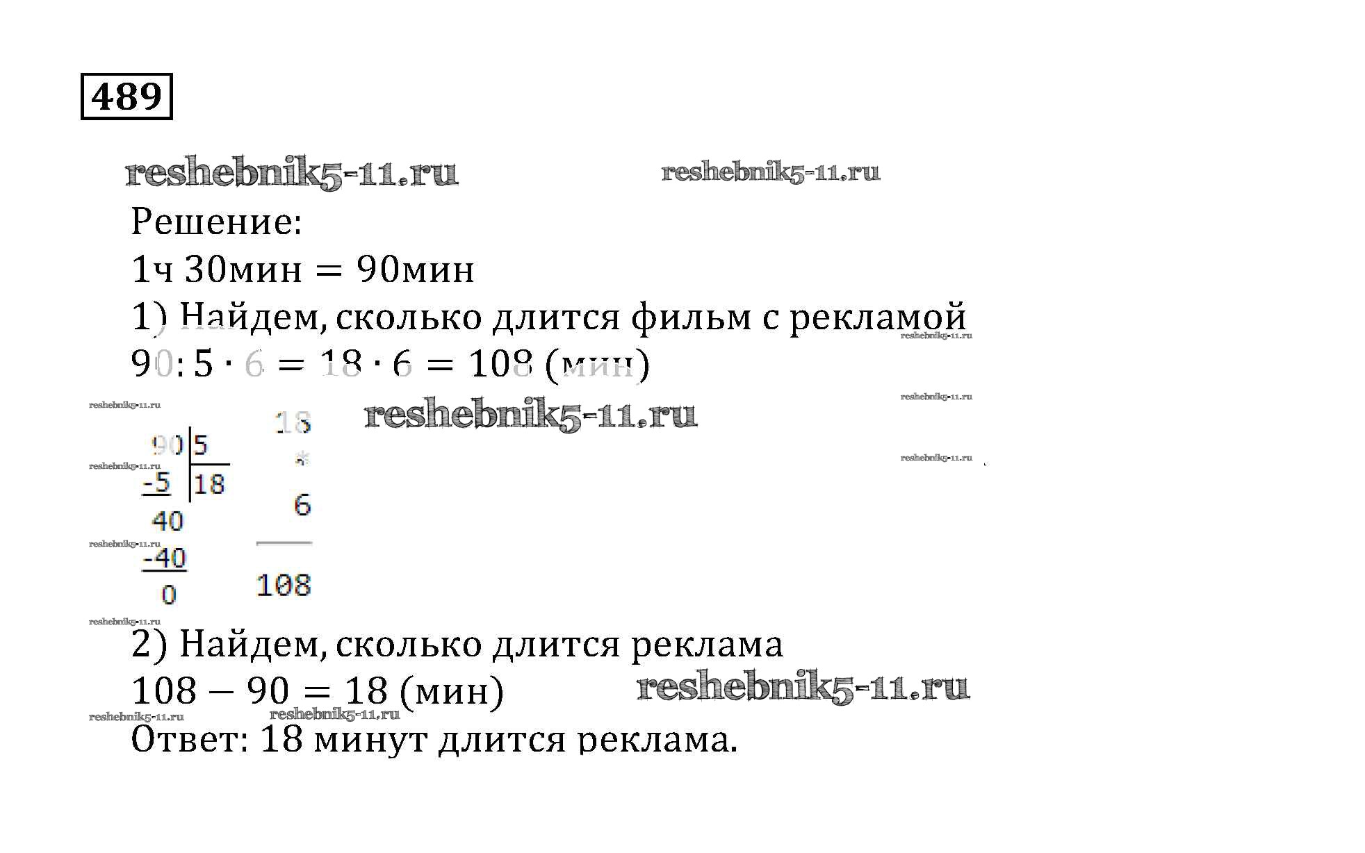 Готовая домашняя работа с ответами по Математике за 5 класс Бунимович, Дорофеев, Суворова Учебник Сферы Просвещение 2014 ФГОС - Упражнения 489