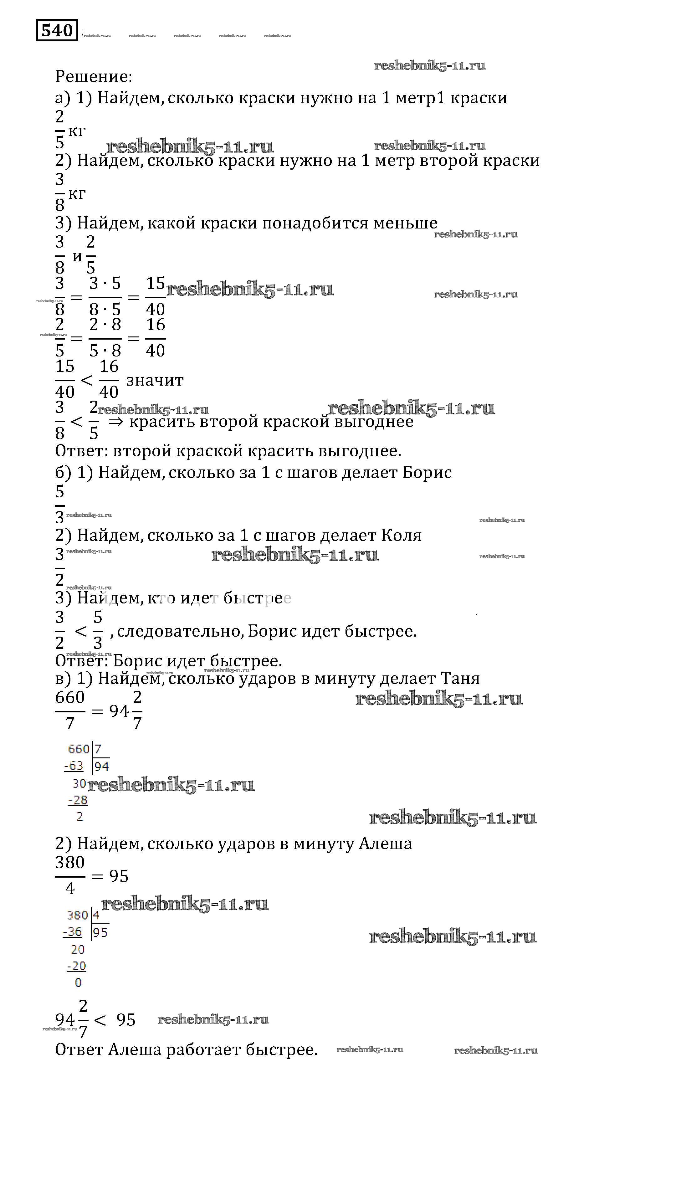 Готовая домашняя работа с ответами по Математике за 5 класс Бунимович, Дорофеев, Суворова Учебник Сферы Просвещение 2014 ФГОС - Упражнения 540