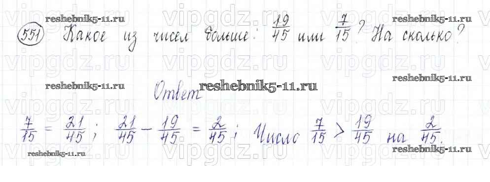 Готовая домашняя работа с ответами по Математике за 5 класс Бунимович, Дорофеев, Суворова Учебник Сферы Просвещение 2014 ФГОС - Упражнения 551