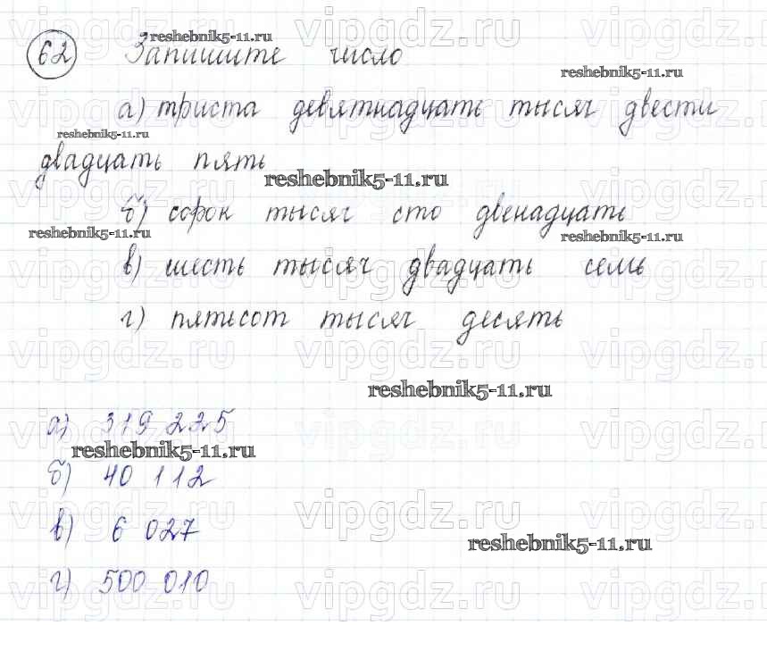 Готовая домашняя работа с ответами по Математике за 5 класс Бунимович, Дорофеев, Суворова Учебник Сферы Просвещение 2014 ФГОС - Упражнения 62