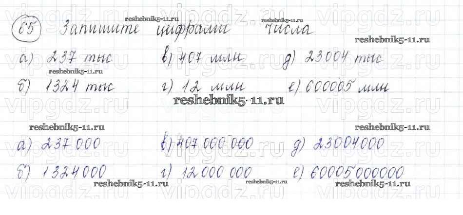 Готовая домашняя работа с ответами по Математике за 5 класс Бунимович, Дорофеев, Суворова Учебник Сферы Просвещение 2014 ФГОС - Упражнения 65