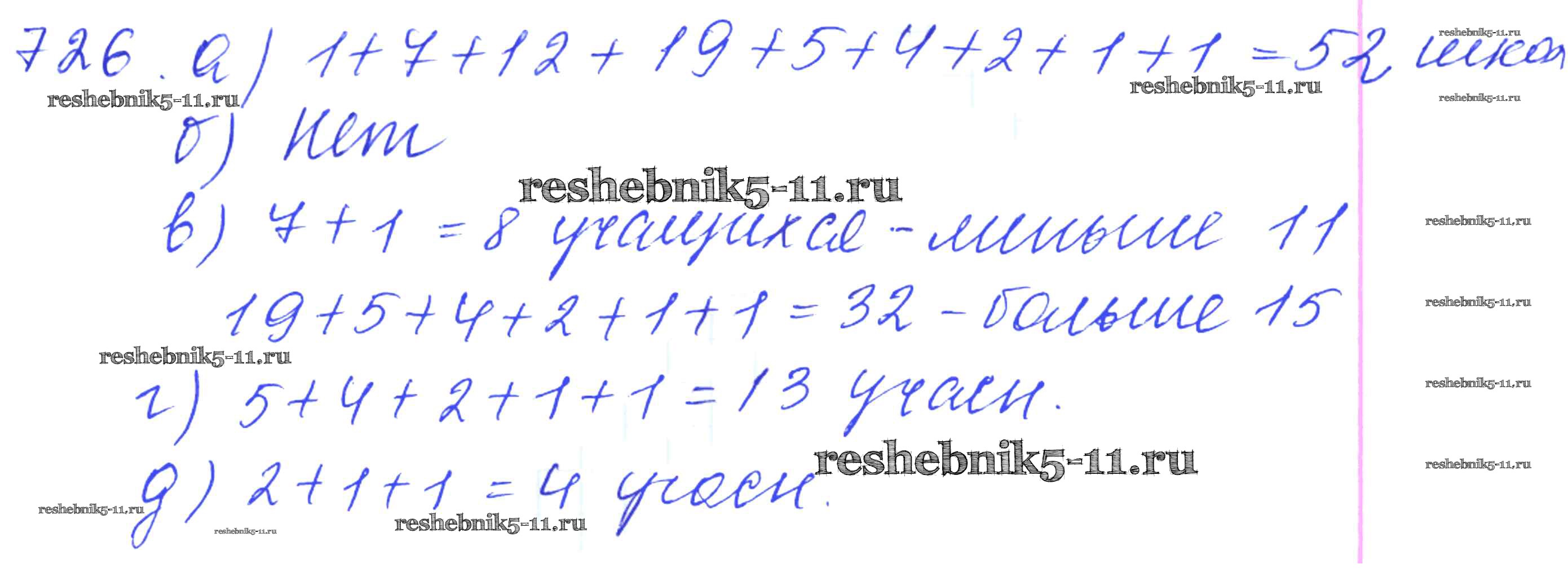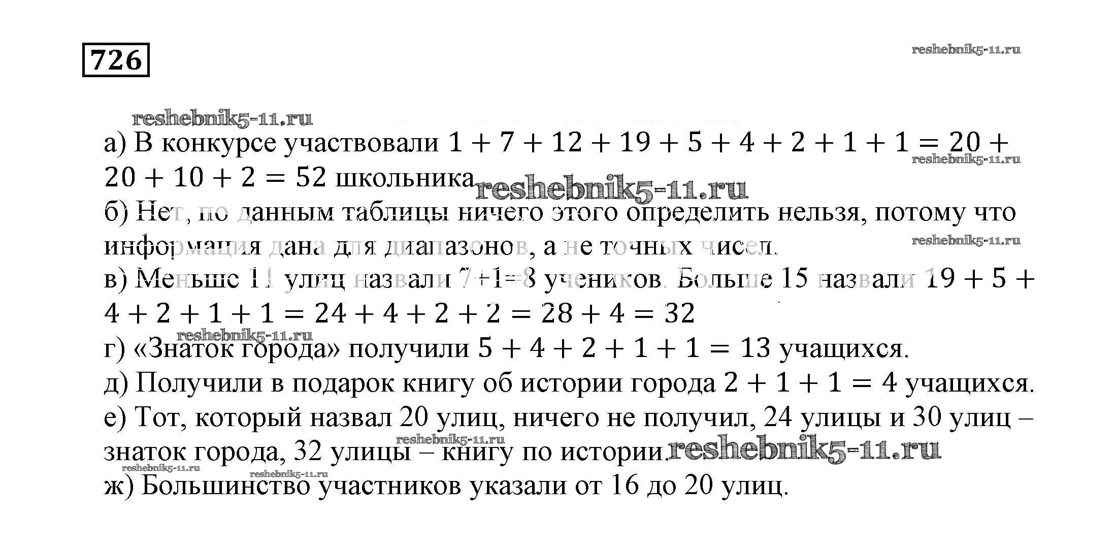 Готовая домашняя работа с ответами по Математике за 5 класс Бунимович, Дорофеев, Суворова Учебник Сферы Просвещение 2014 ФГОС - Упражнения 726