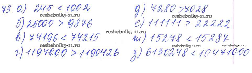 Готовая домашняя работа с ответами по Математике за 5 класс Бунимович, Дорофеев, Суворова Учебник Сферы Просвещение 2014 ФГОС - Упражнения 73