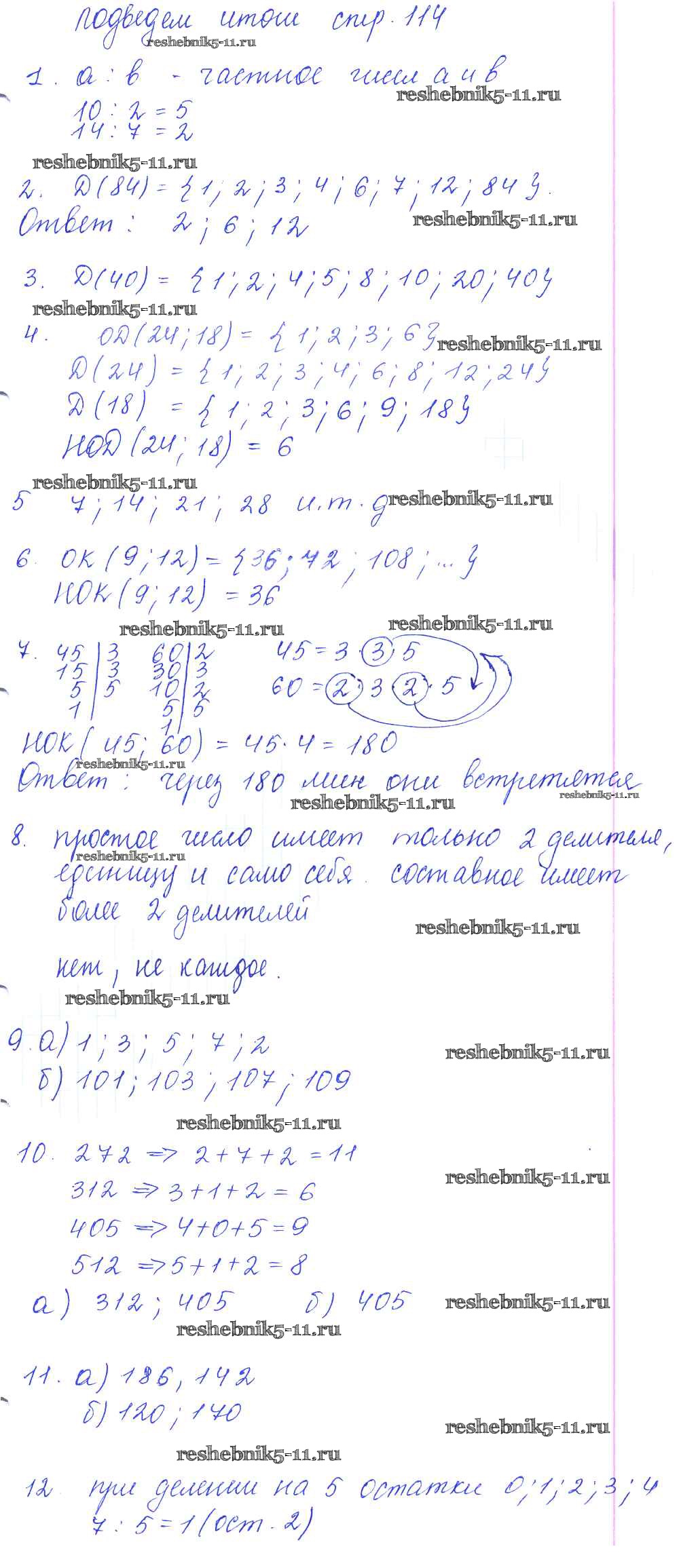 Готовая домашняя работа с ответами по Математике за 5 класс Бунимович, Дорофеев, Суворова Учебник Сферы Просвещение 2014 ФГОС - Подведем итоги Глава 6