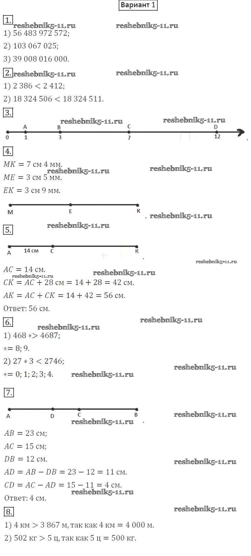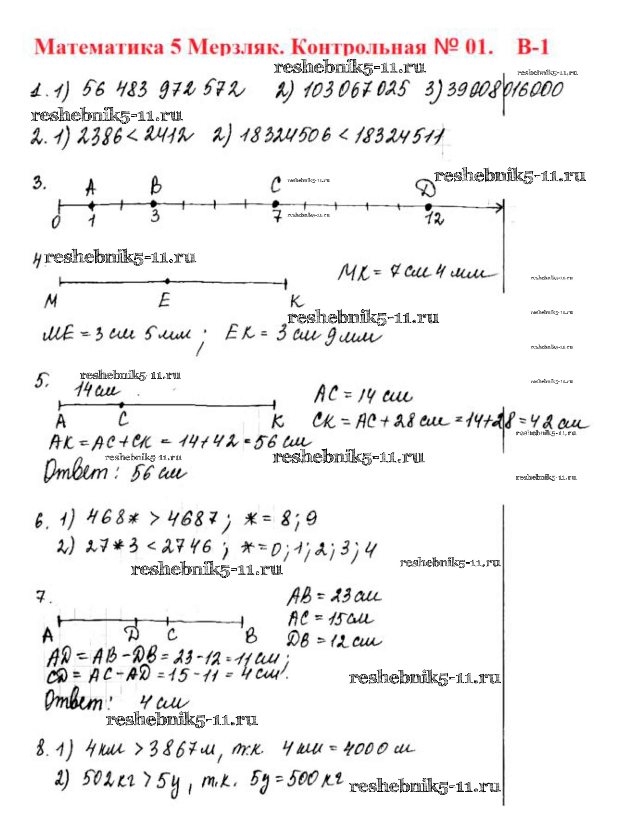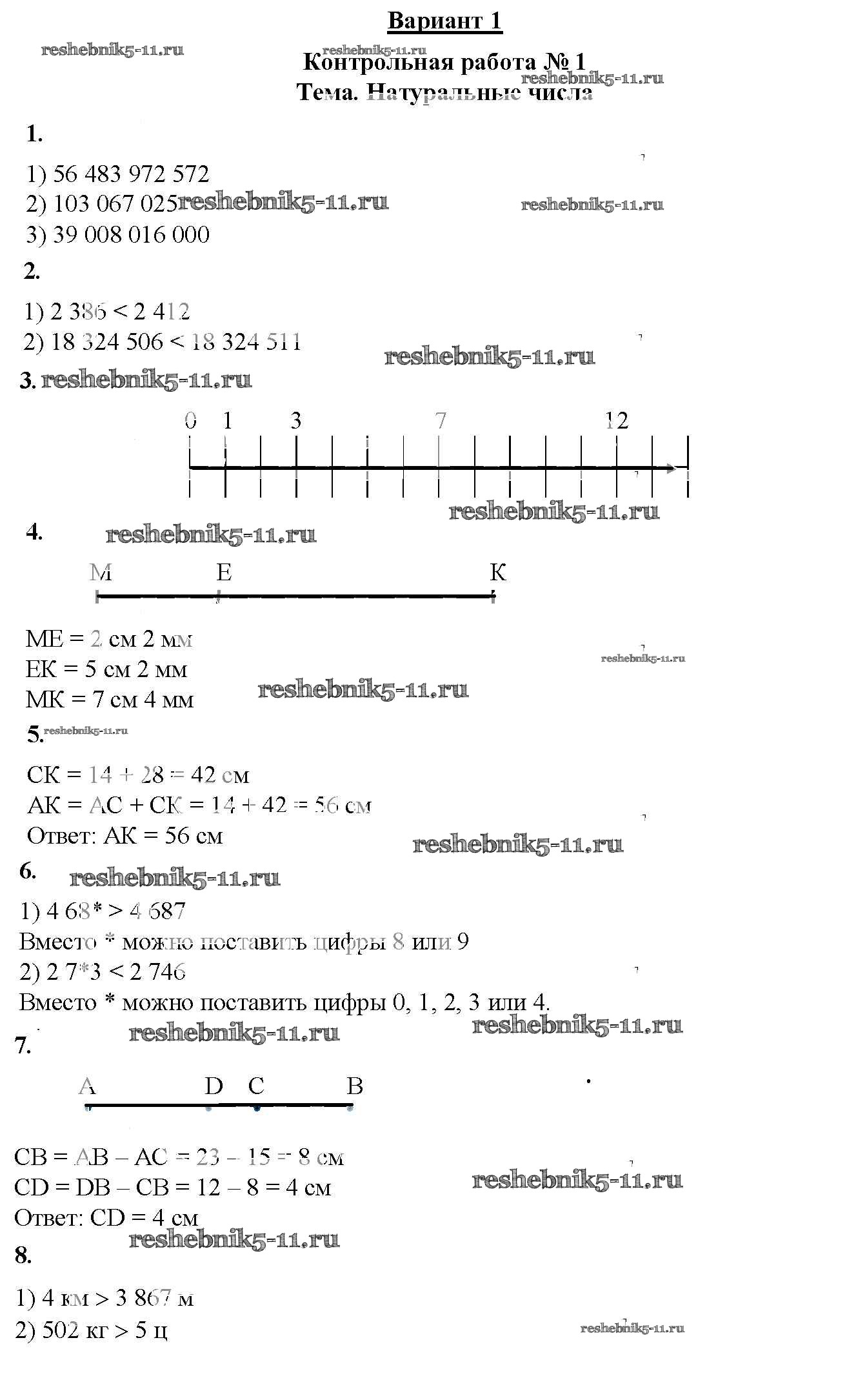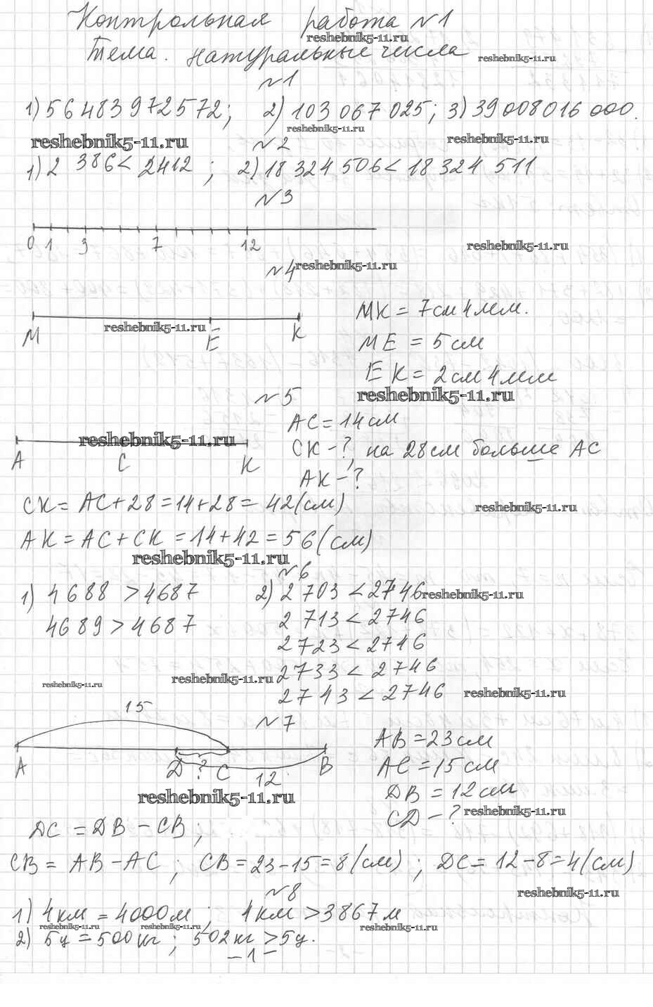 Готовая домашняя работа с ответами по Математике за 5 класс Мерзляк, Полонский, Якир, Рябинович Дидактические материалы Алгоритм успеха Вентана-граф 2017 ФГОС - КР №1. Натуральные числа вариант 1