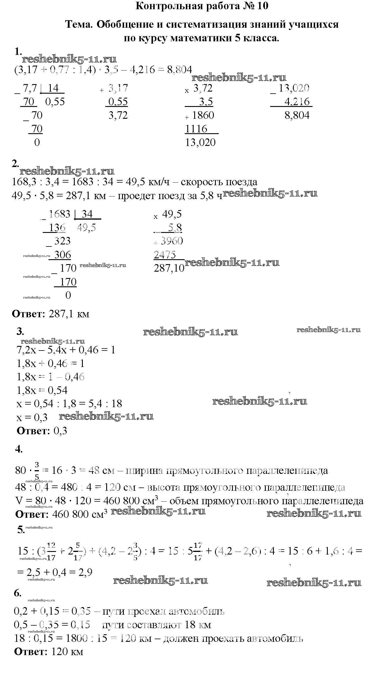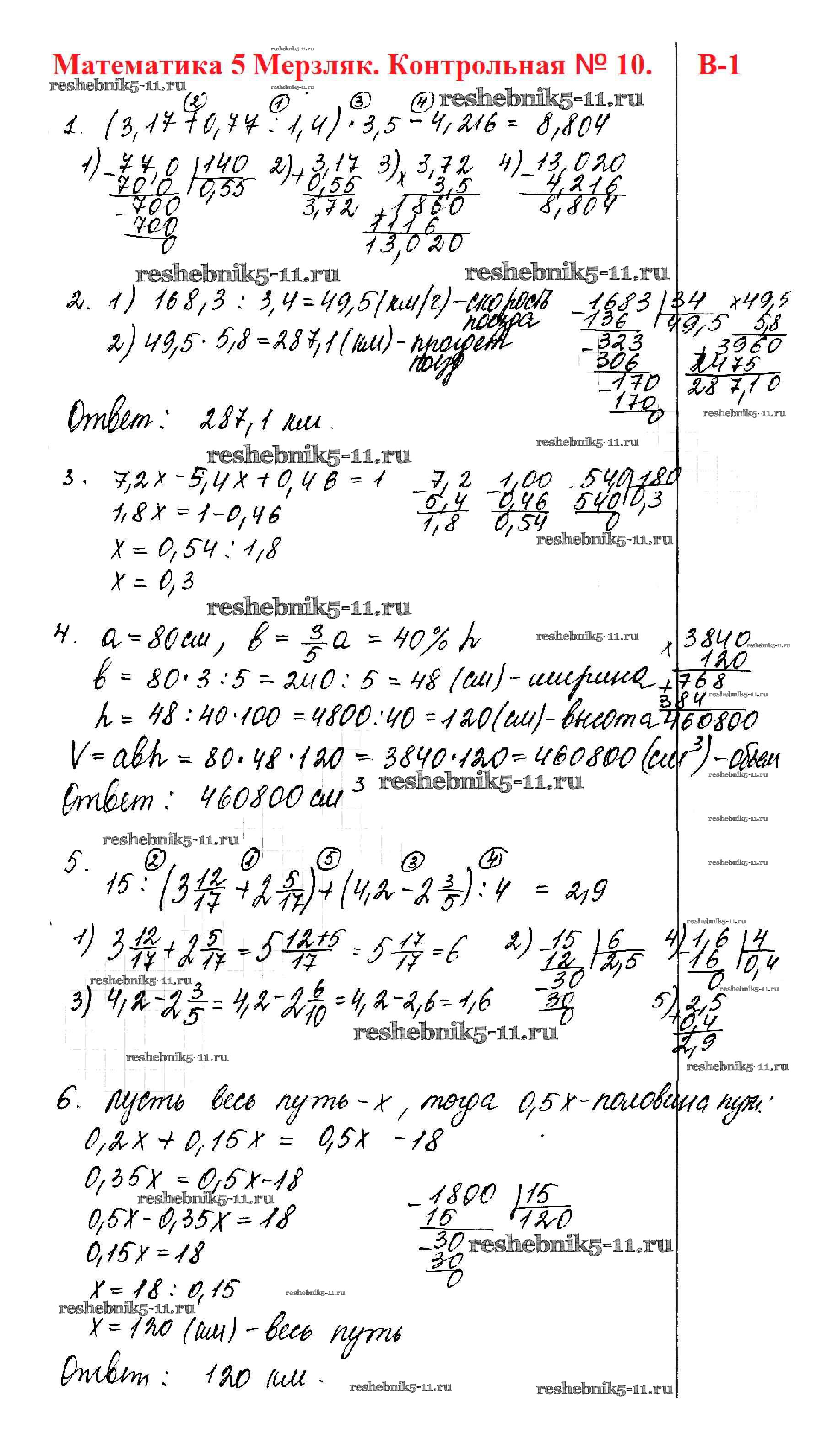 Готовая домашняя работа с ответами по Математике за 5 класс Мерзляк, Полонский, Якир, Рябинович Дидактические материалы Алгоритм успеха Вентана-граф 2017 ФГОС - КР №10. Итоговая за 5 класс вариант 1