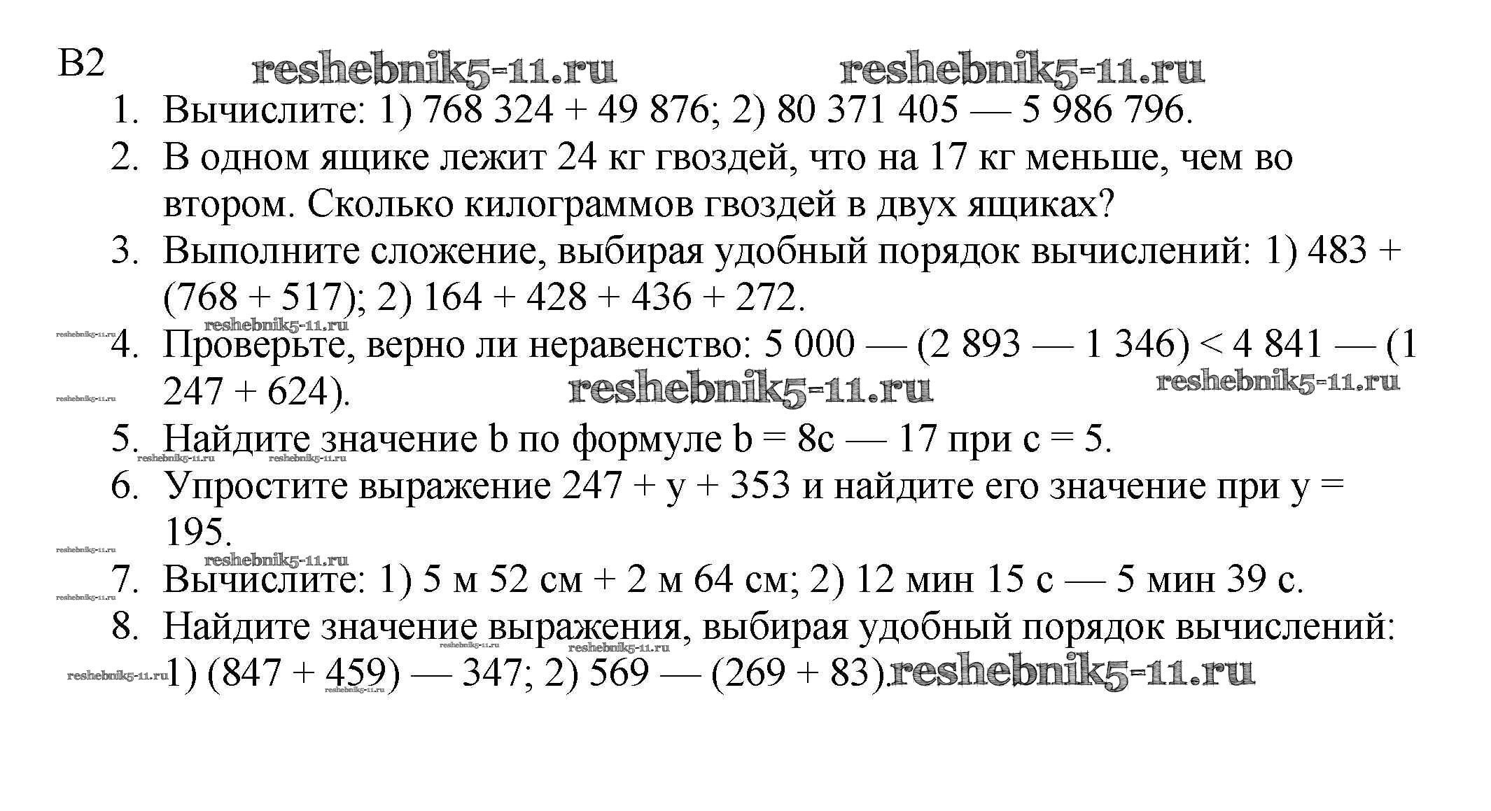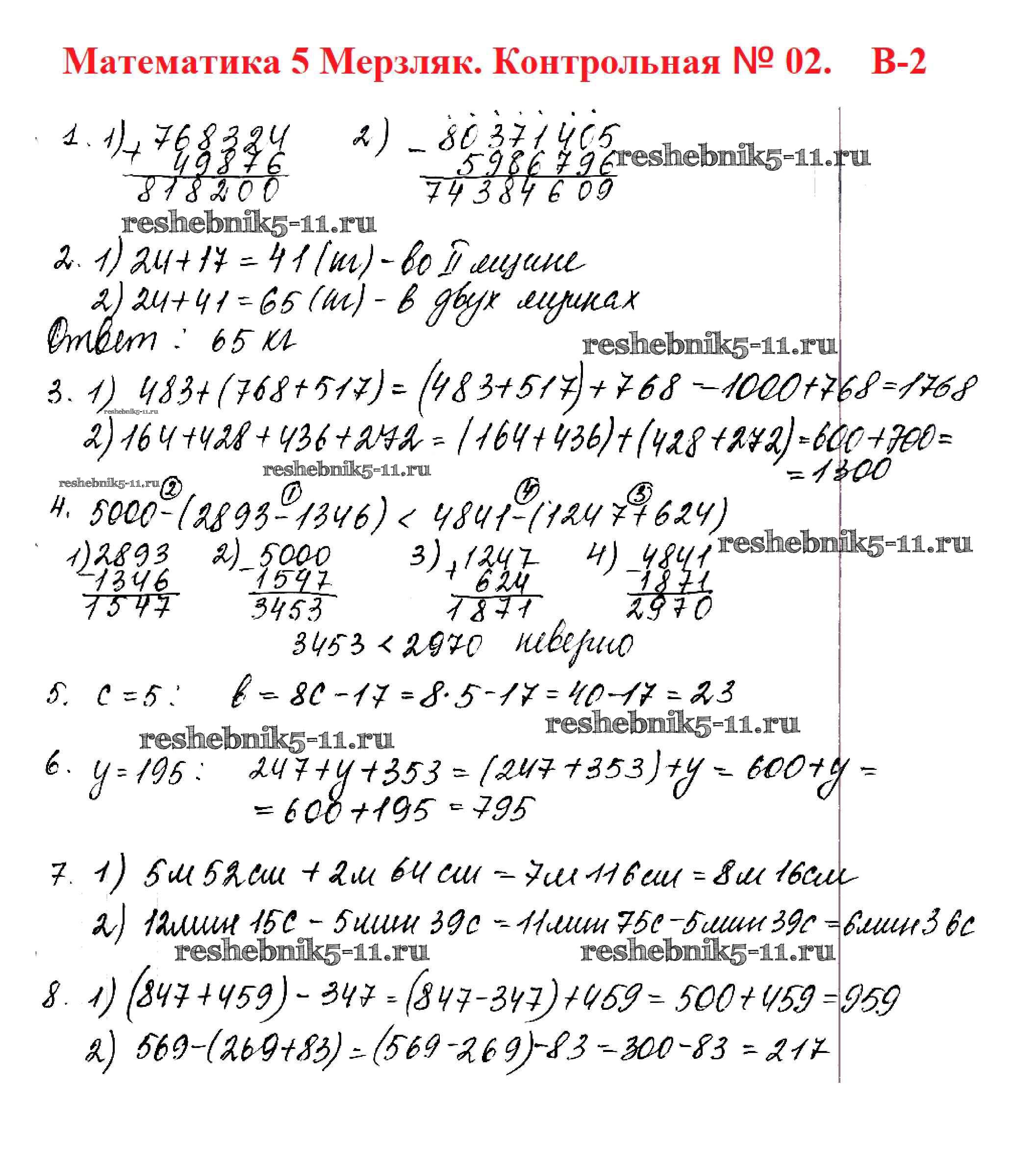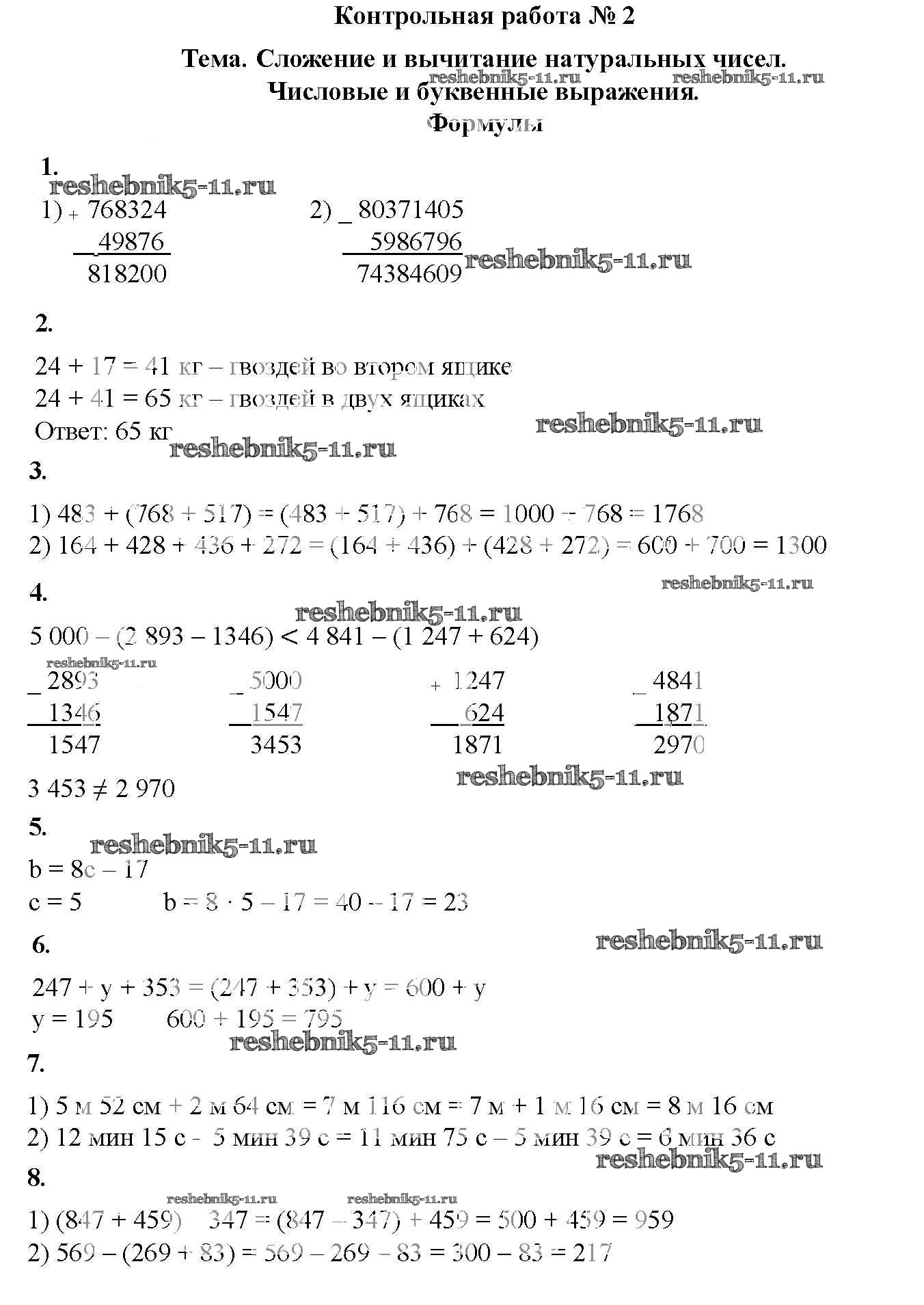 Готовая домашняя работа с ответами по Математике за 5 класс Мерзляк, Полонский, Якир, Рябинович Дидактические материалы Алгоритм успеха Вентана-граф 2017 ФГОС - КР №2. Сложение и вычитание натуральных чисел. Числовые и буквенные выражения. Числа вариант 2