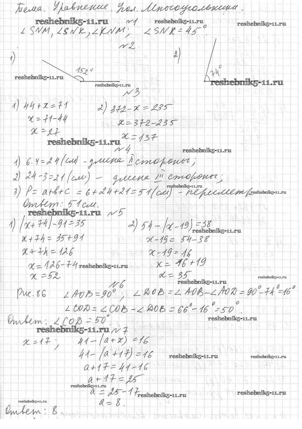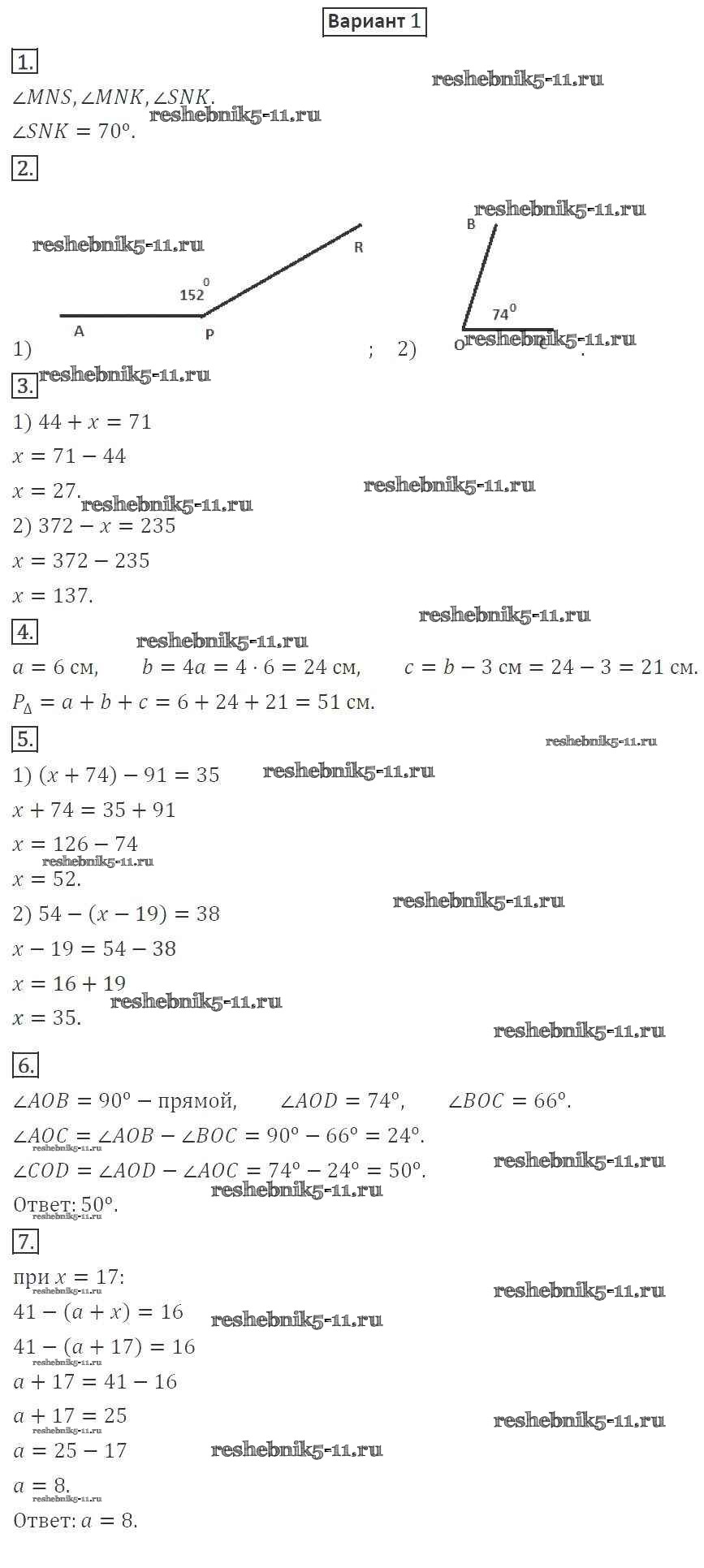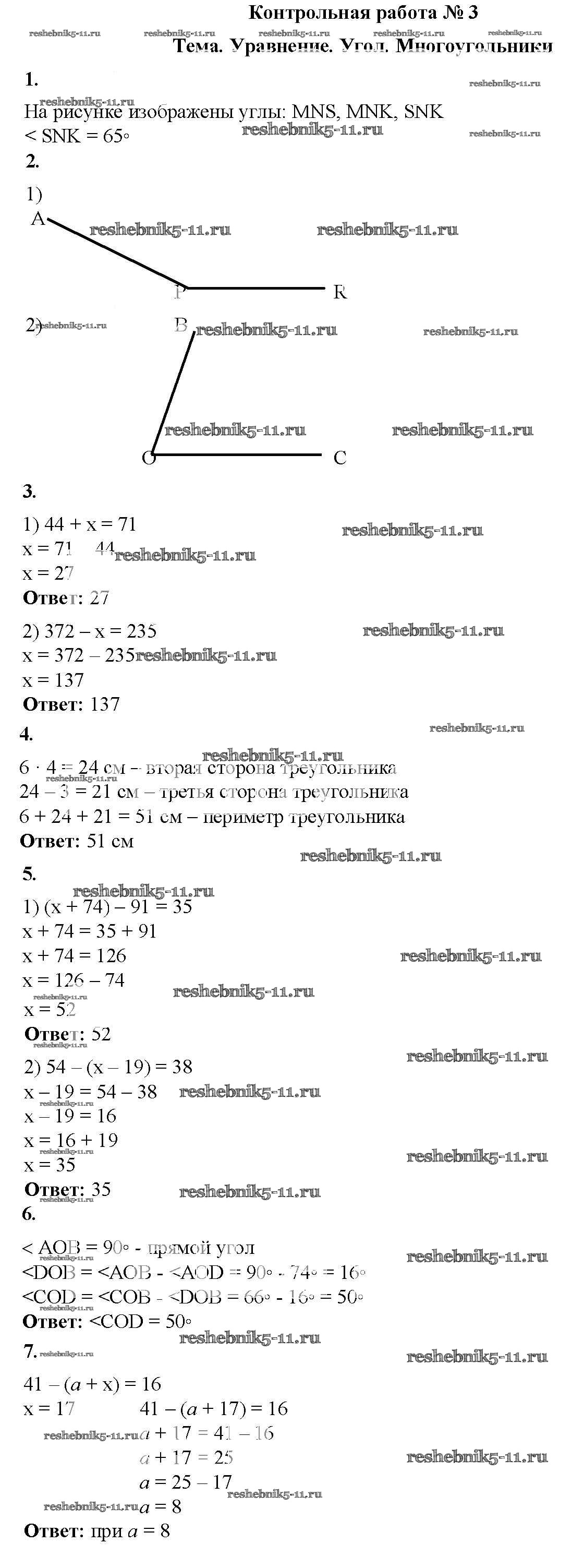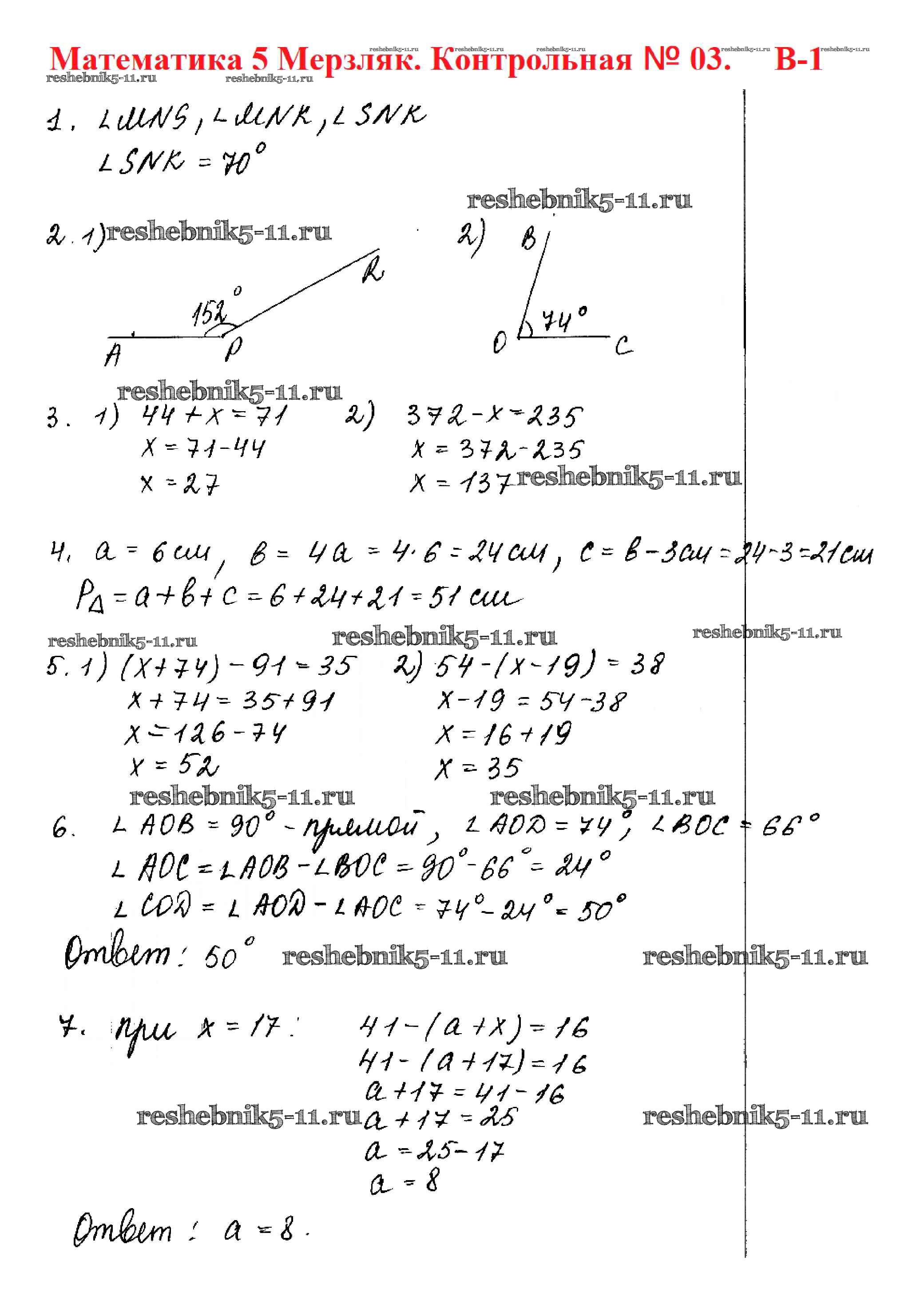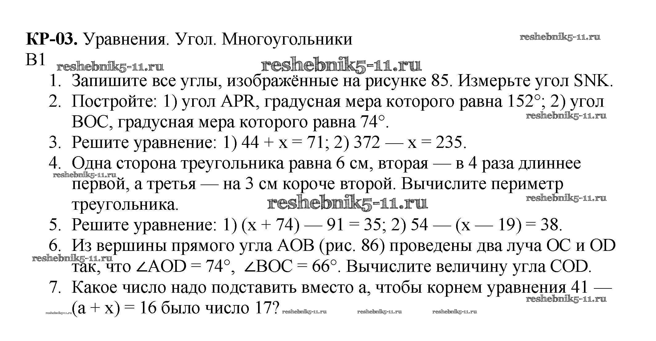 Готовая домашняя работа с ответами по Математике за 5 класс Мерзляк, Полонский, Якир, Рябинович Дидактические материалы Алгоритм успеха Вентана-граф 2017 ФГОС - КР №3. Уравнение. Угол. Многоугольники вариант 1