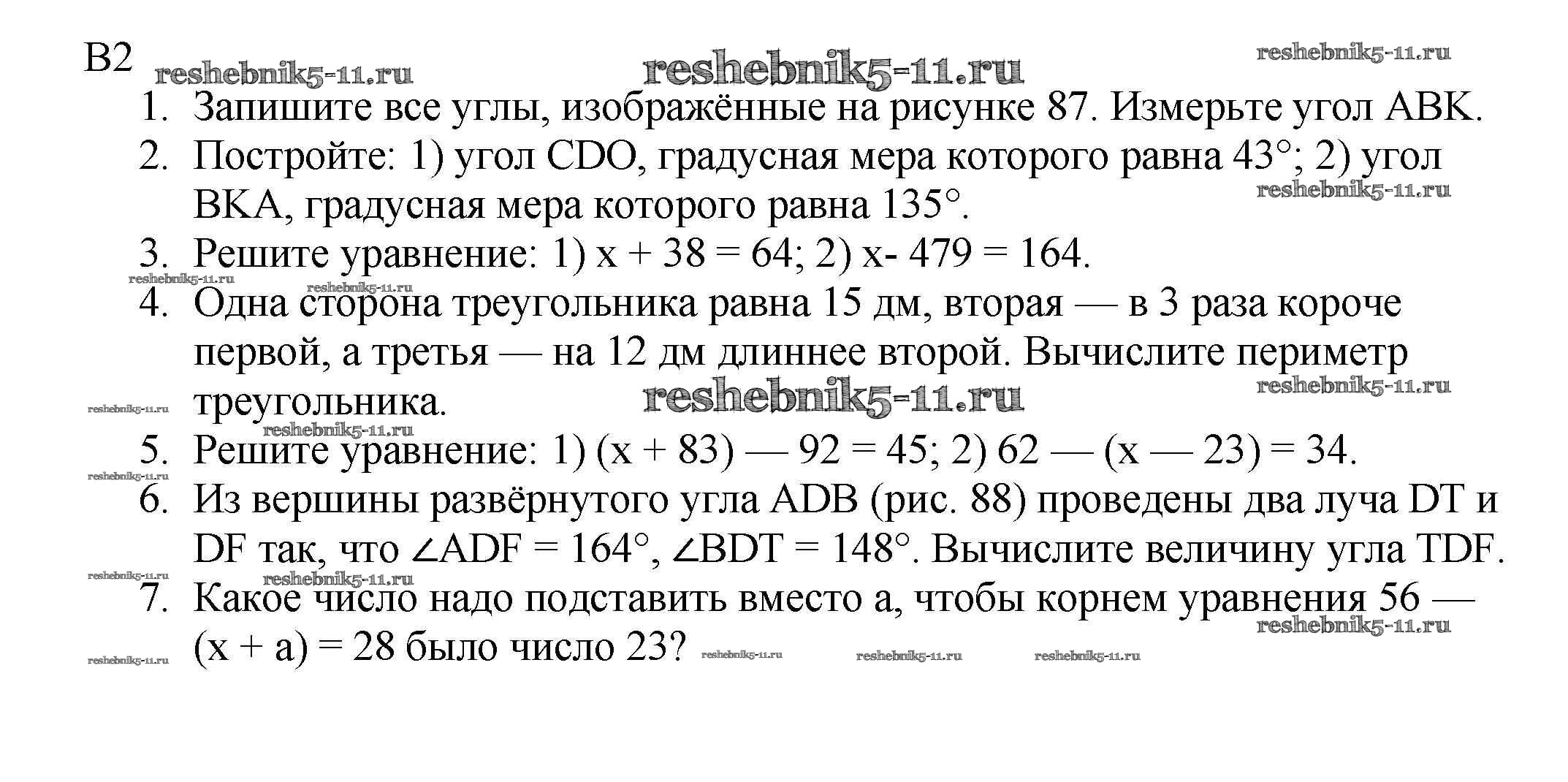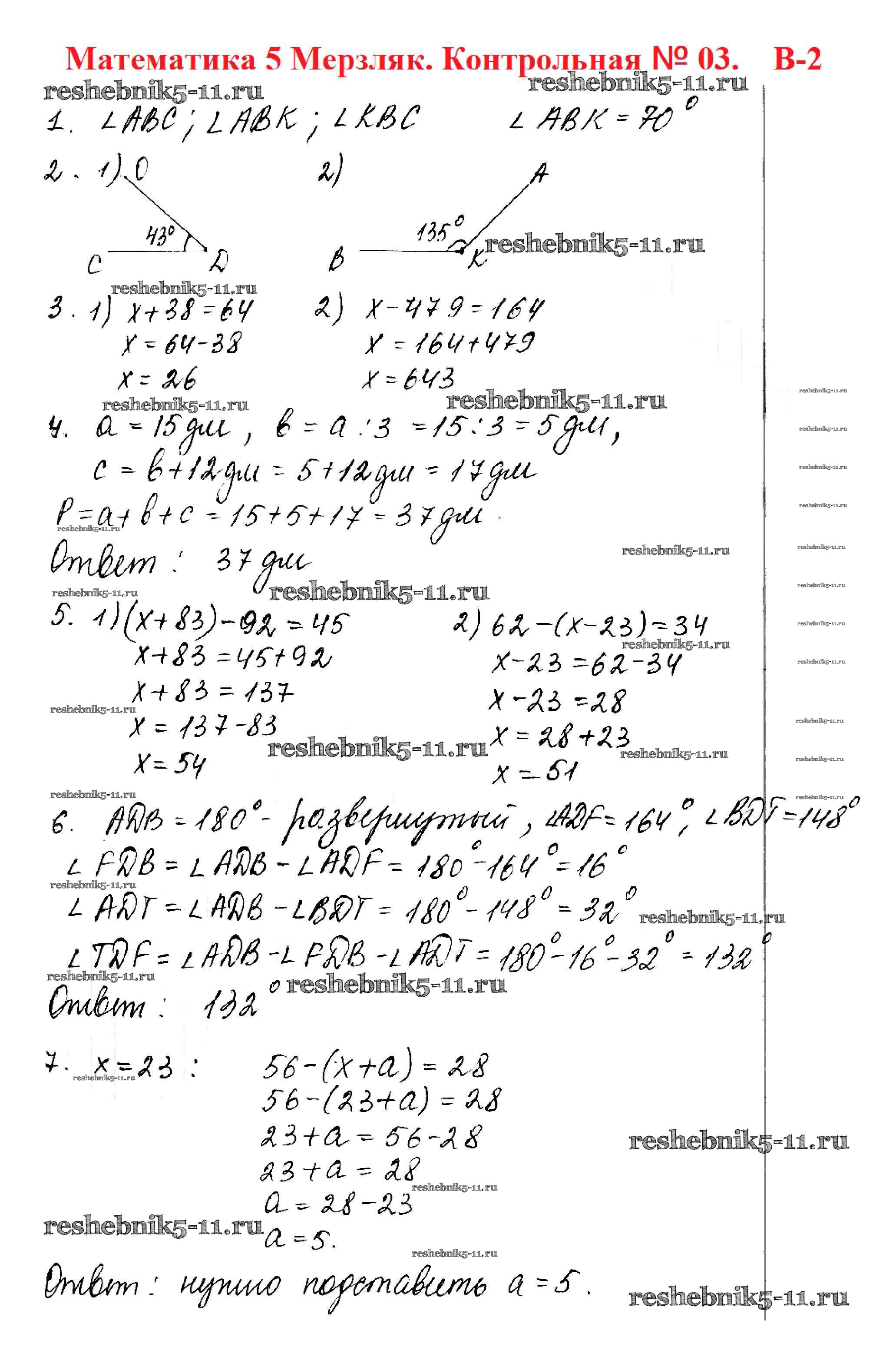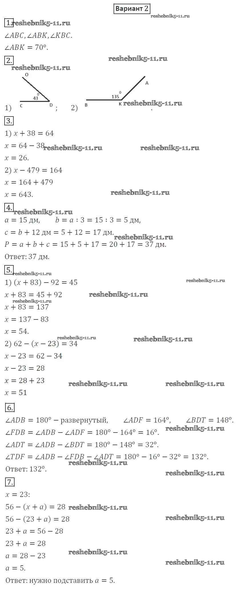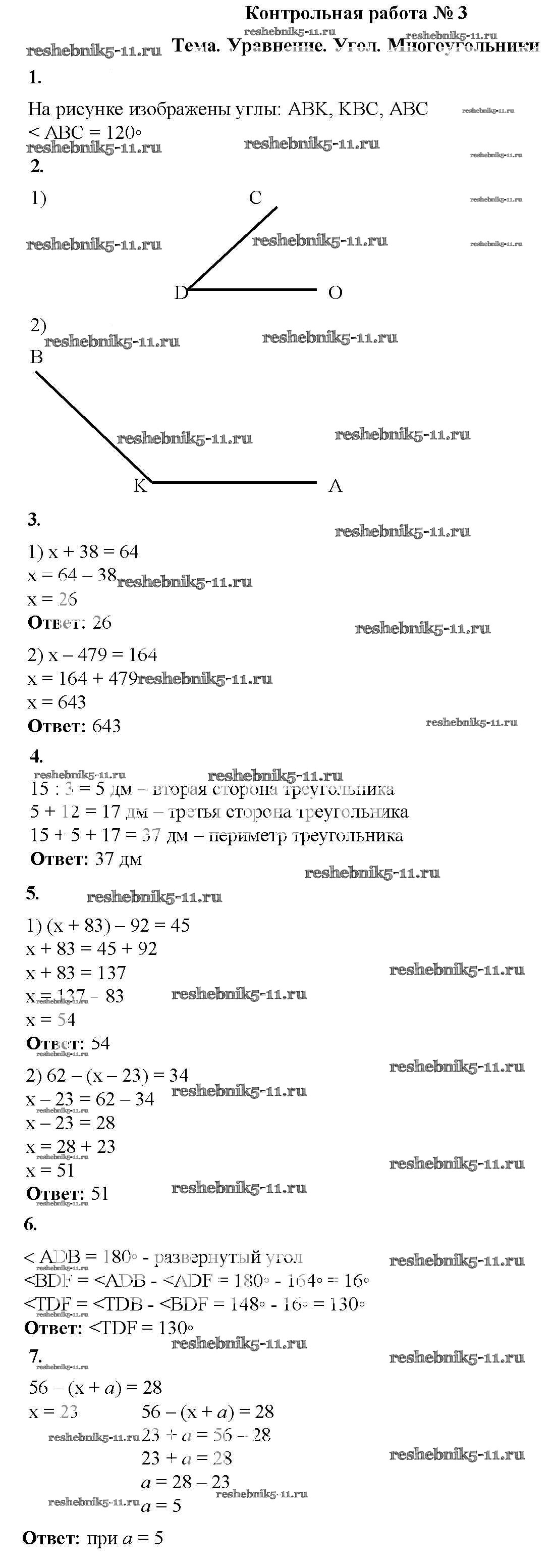 Готовая домашняя работа с ответами по Математике за 5 класс Мерзляк, Полонский, Якир, Рябинович Дидактические материалы Алгоритм успеха Вентана-граф 2017 ФГОС - КР №3. Уравнение. Угол. Многоугольники вариант 2
