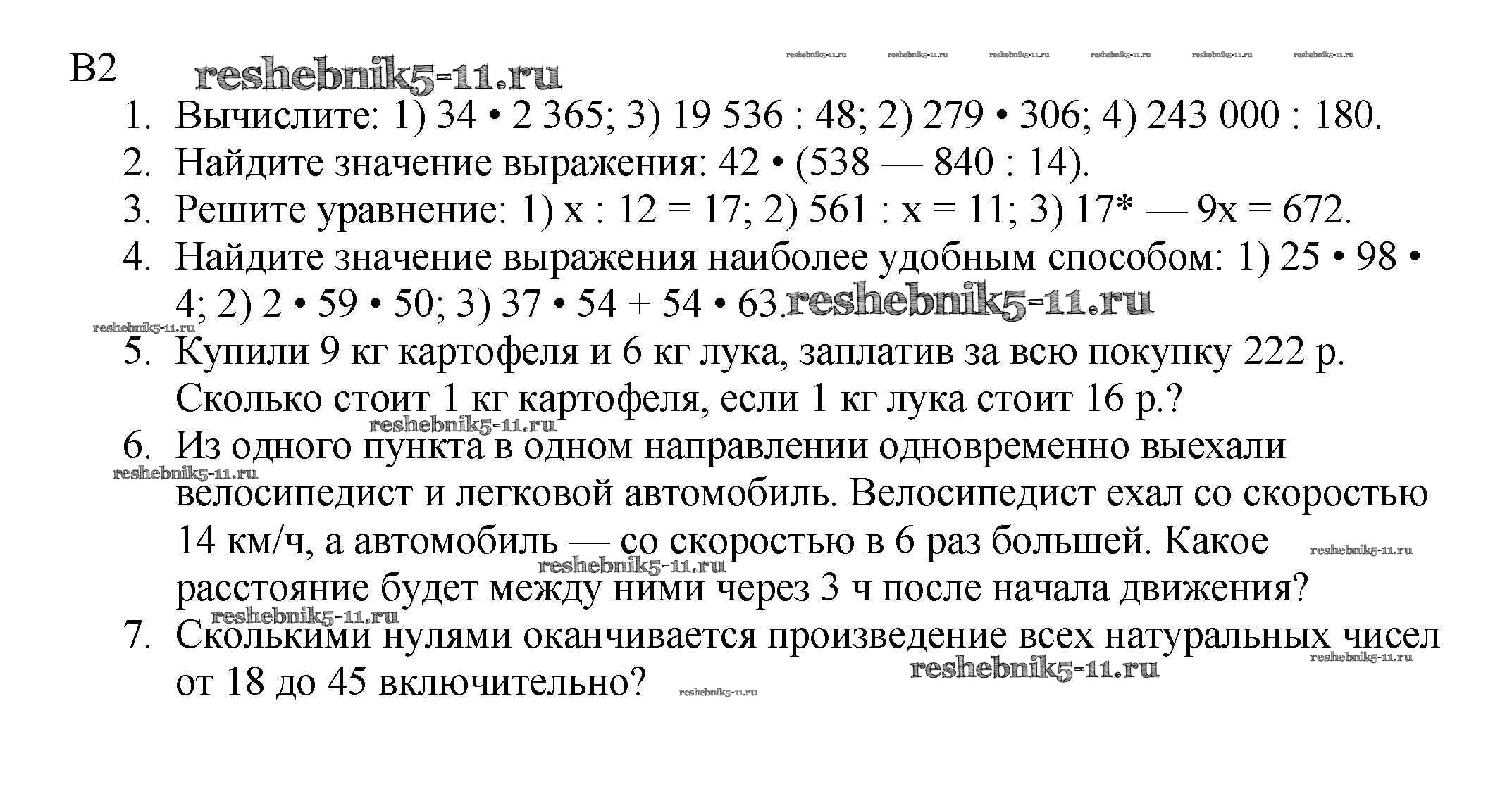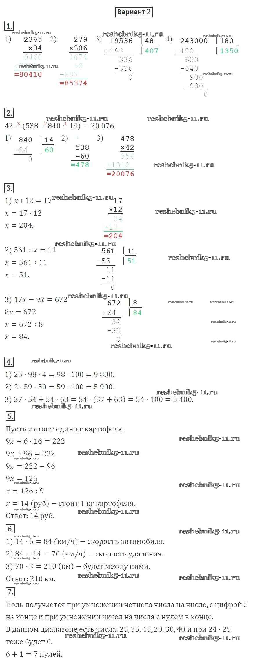 Готовая домашняя работа с ответами по Математике за 5 класс Мерзляк, Полонский, Якир, Рябинович Дидактические материалы Алгоритм успеха Вентана-граф 2017 ФГОС - КР №4. Умножение и деление натуральных чисел. Свойства умножения вариант 2