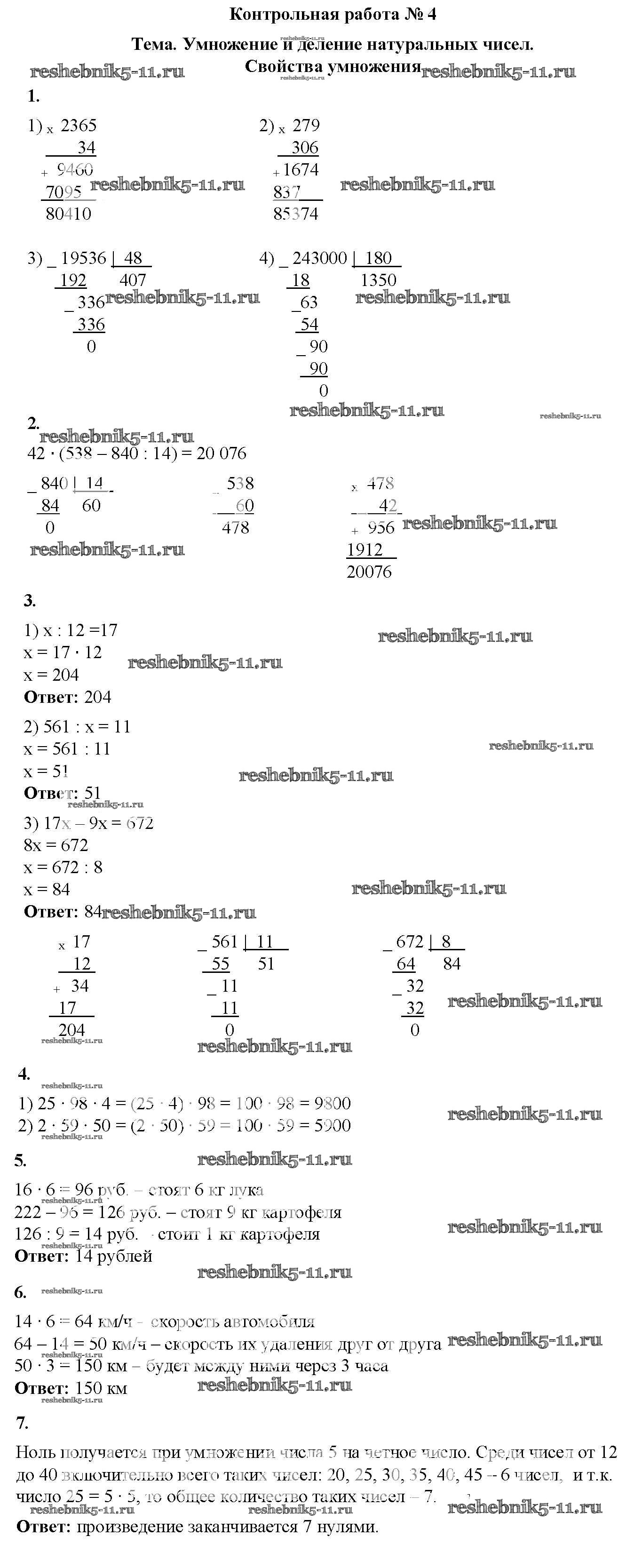 КР №4. Умножение и деление натуральных чисел. Свойства умножения