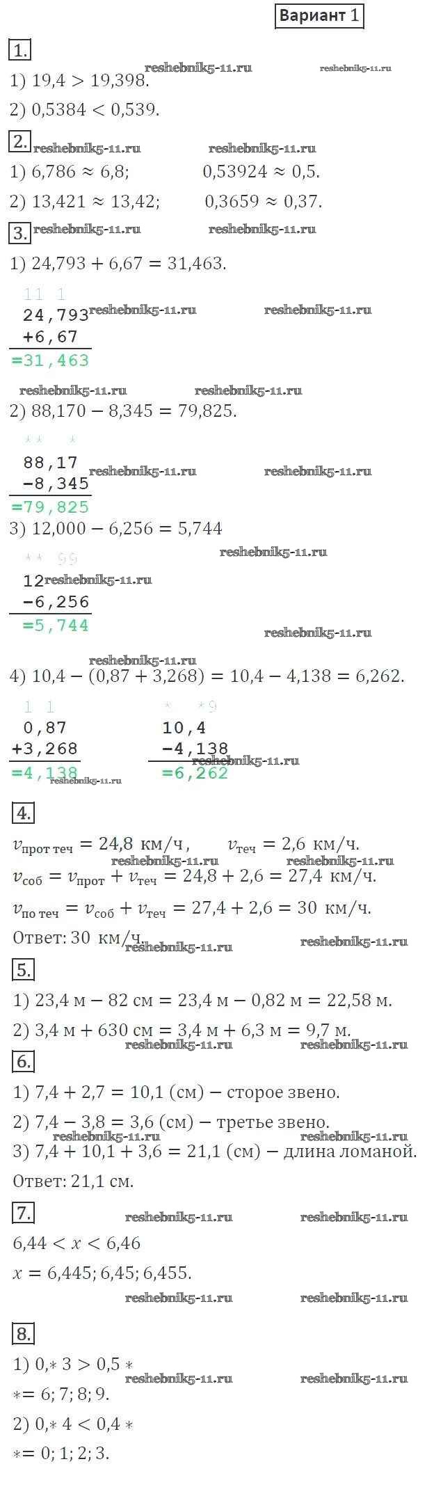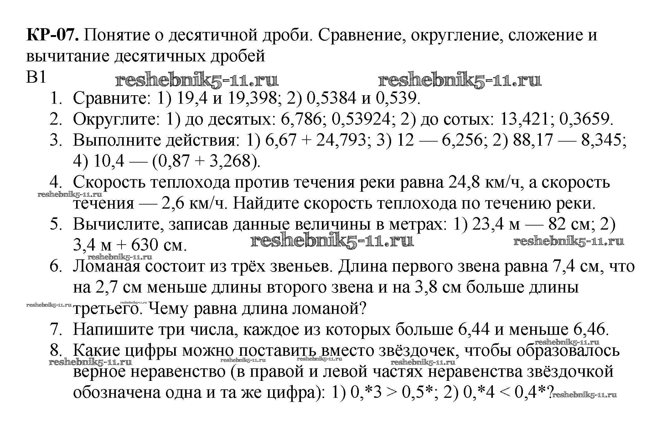 Готовая домашняя работа с ответами по Математике за 5 класс Мерзляк, Полонский, Якир, Рябинович Дидактические материалы Алгоритм успеха Вентана-граф 2017 ФГОС - КР №7. Понятие о десятичной дроби. Сравнение, округление, сложение и вычитание вариант 1