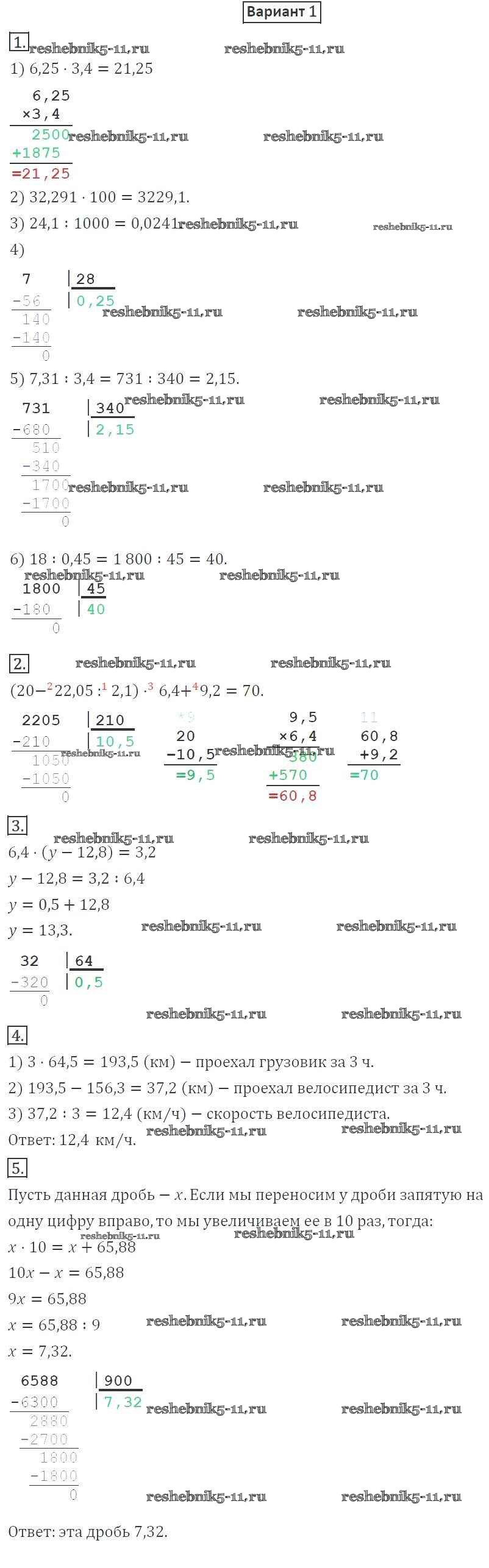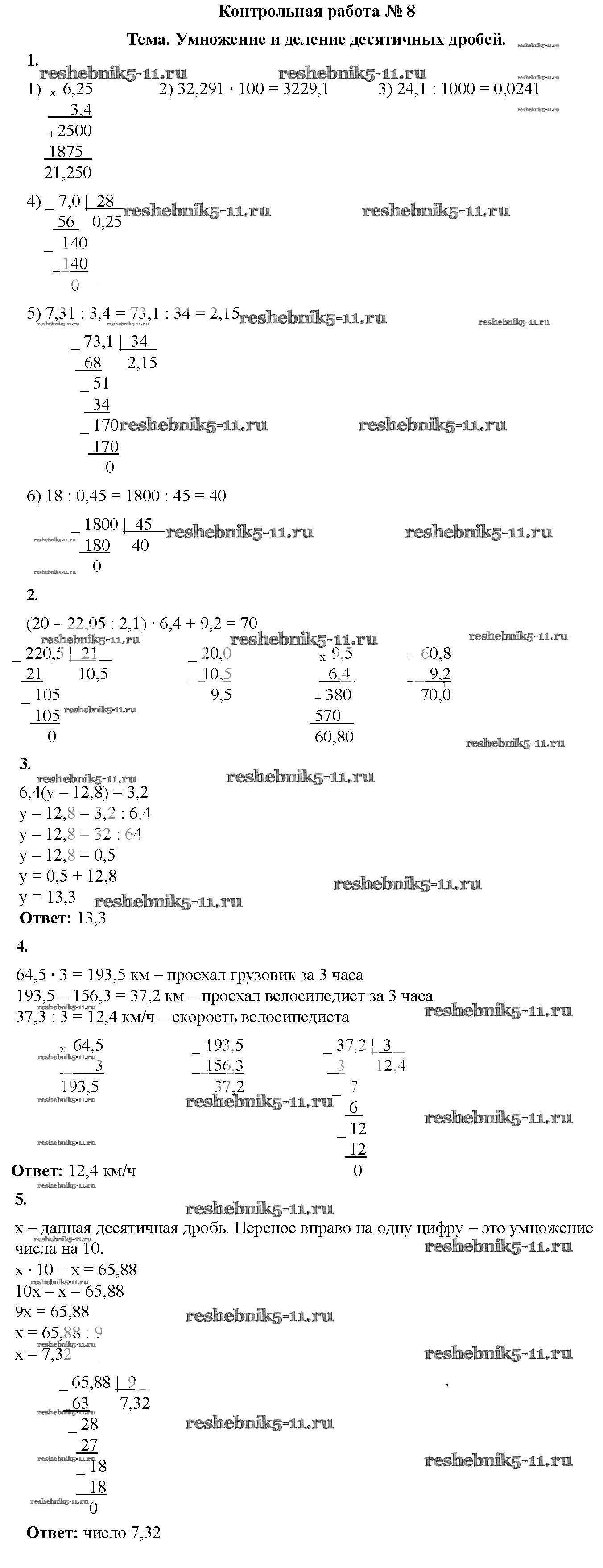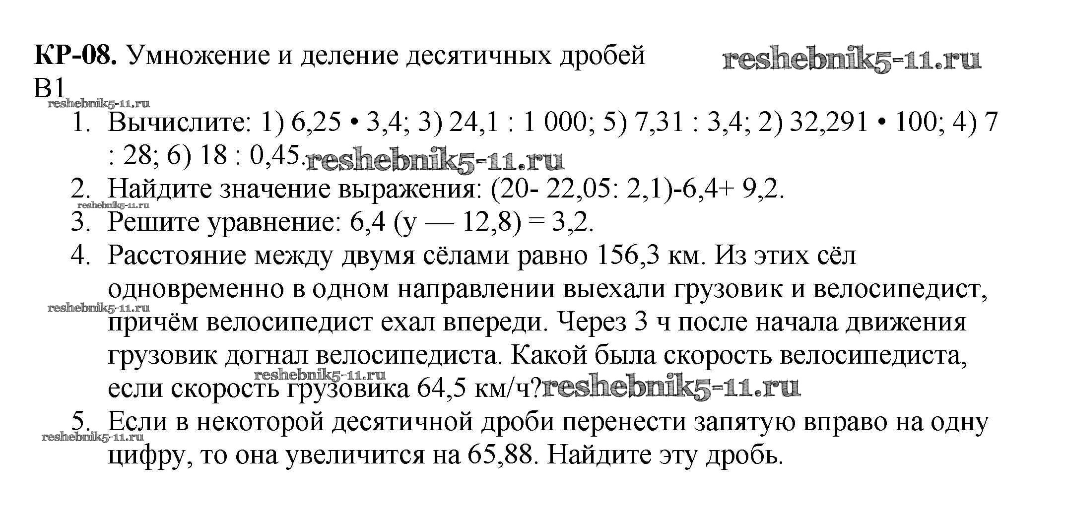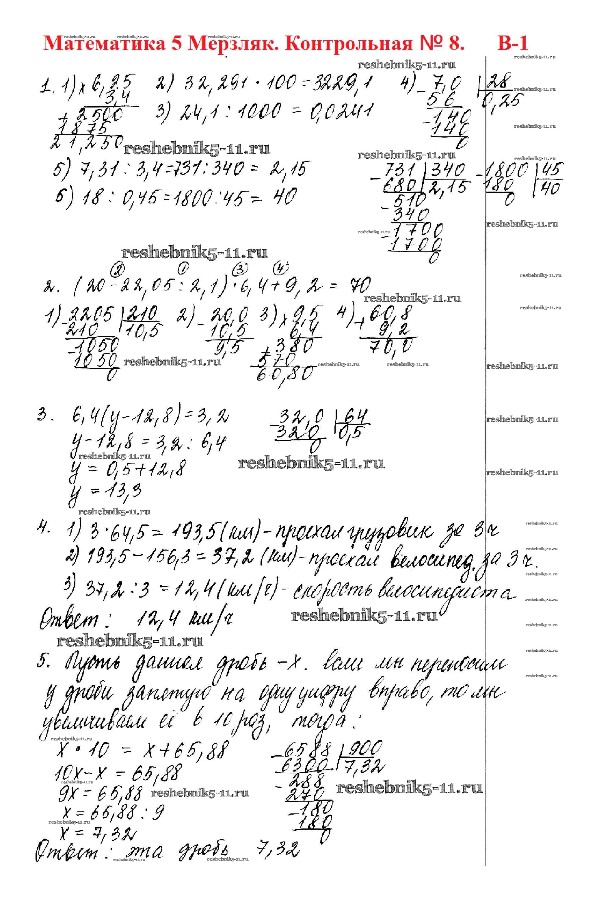 Готовая домашняя работа с ответами по Математике за 5 класс Мерзляк, Полонский, Якир, Рябинович Дидактические материалы Алгоритм успеха Вентана-граф 2017 ФГОС - КР №8. Умножение и деление десятичных дробей вариант 1