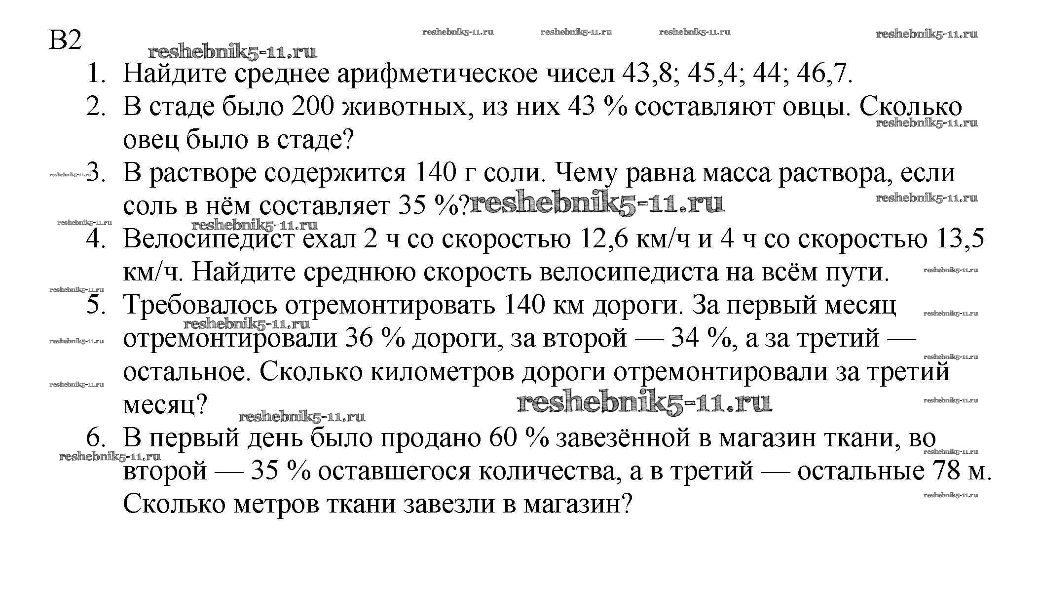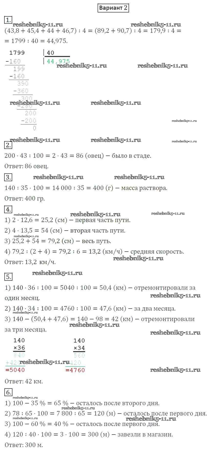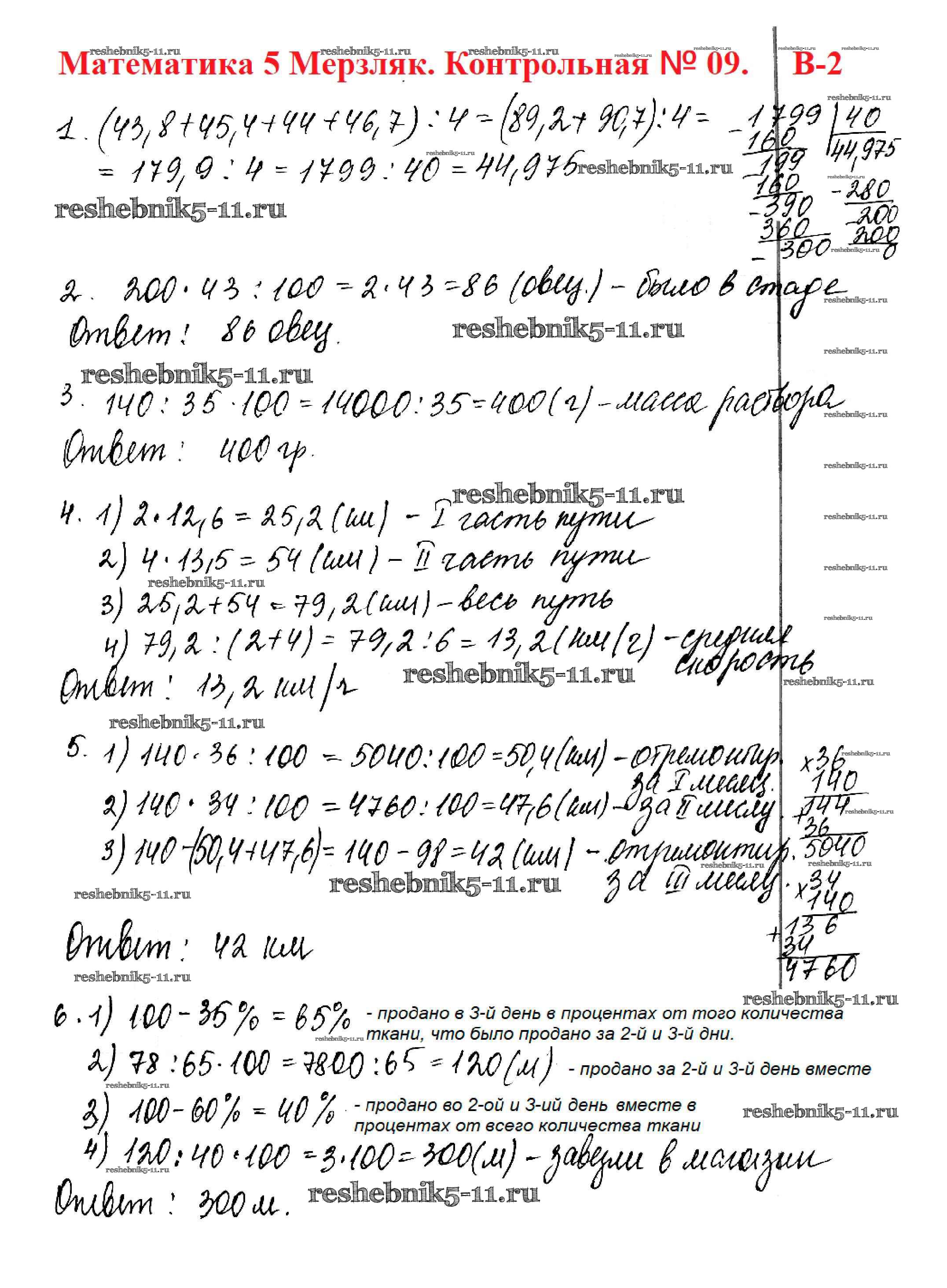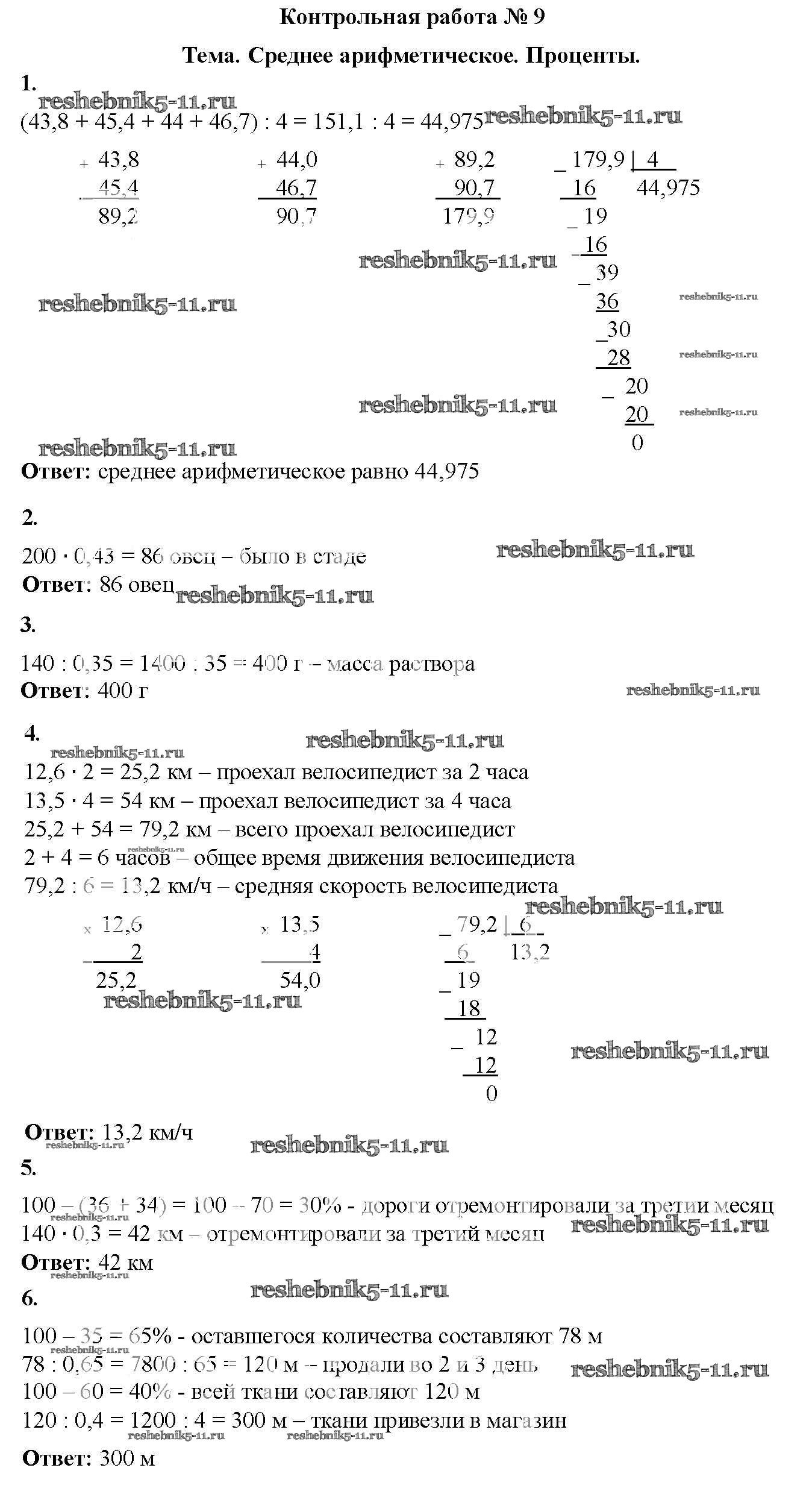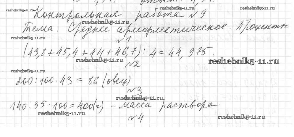 Готовая домашняя работа с ответами по Математике за 5 класс Мерзляк, Полонский, Якир, Рябинович Дидактические материалы Алгоритм успеха Вентана-граф 2017 ФГОС - КР №9. Среднее арифметическое. Проценты вариант 2